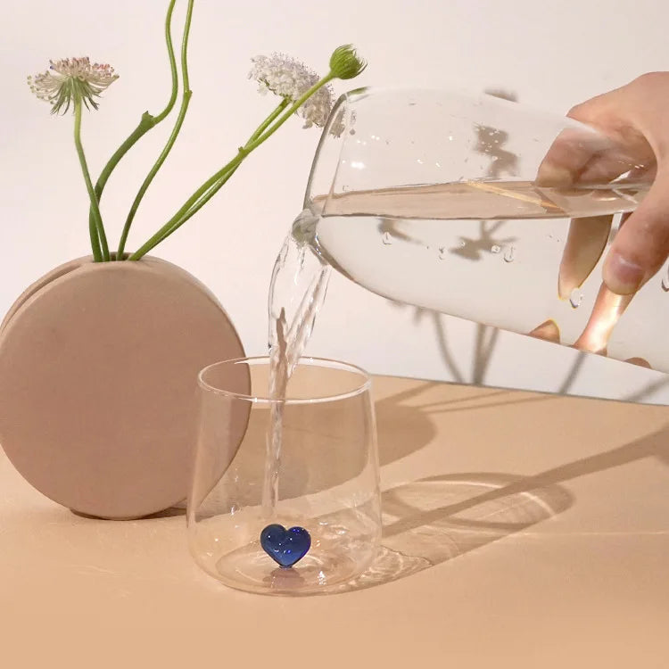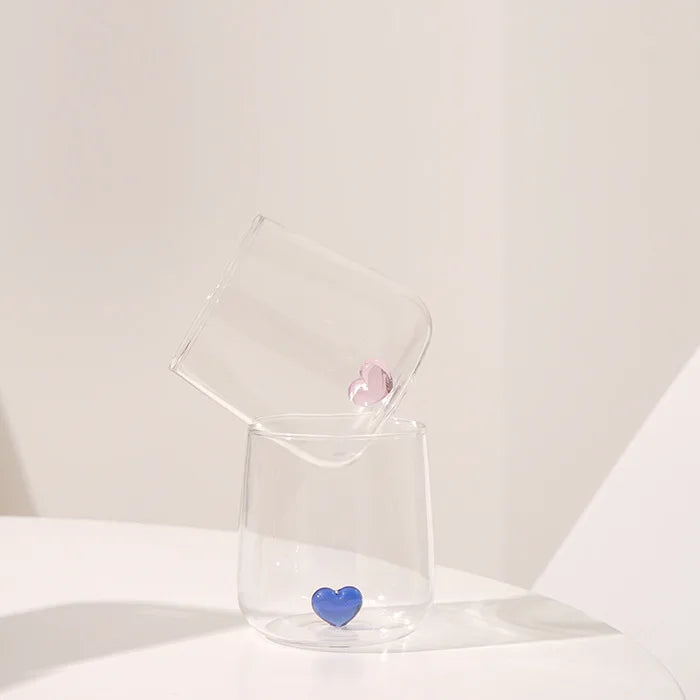 كوب ثلاثي الأبعاد على شكل قلب من ديكوربايتس™: هدية من الزجاج الأحمر والأزرق للبنات