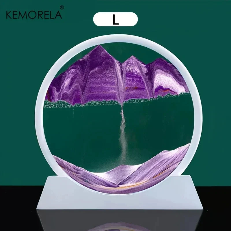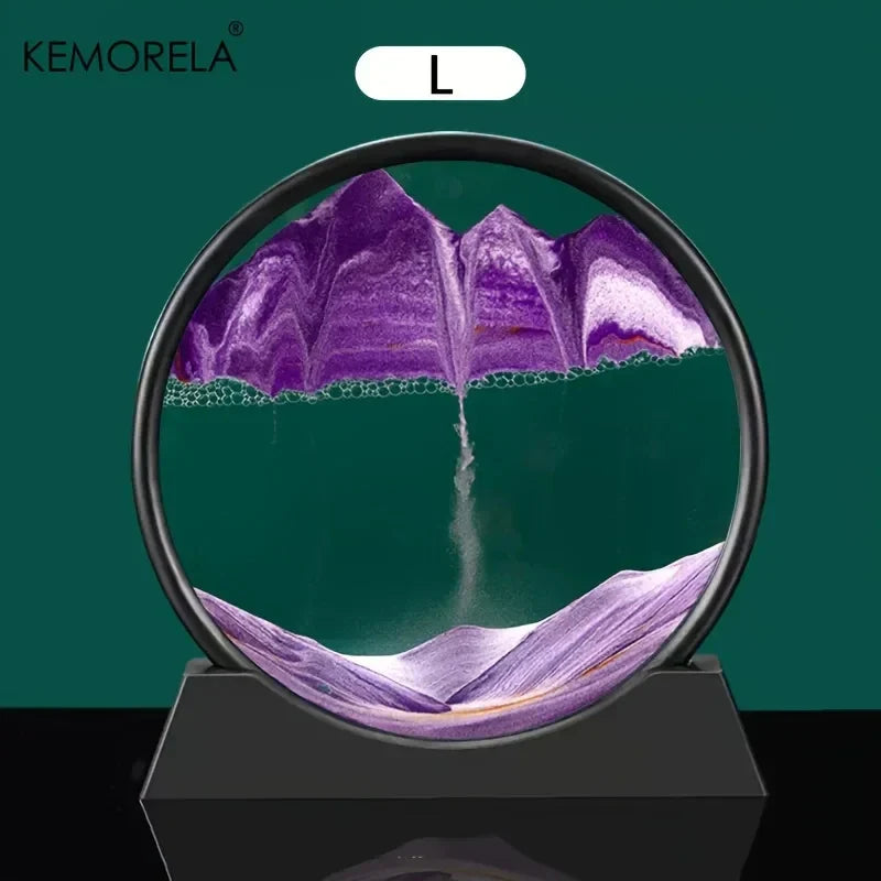 أضف لمسة ساحرة إلى ديكور منزلك مع لوحة ديكوربايتس الفنية ثلاثية الأبعاد للرمال المتحركة. تتميز هذه القطعة الرائعة بإطار زجاجي دائري مقاس ١٢ بوصة مليء بالرمال الملونة التي تتدفق وتخلق أنماطًا جميلة تشبه أمواج المحيط.