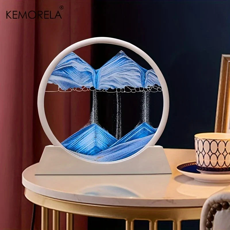 لوحة فنية ثلاثية الأبعاد من ديكوربايتس™ للرمال المتحركة - ساعة رملية دائرية زجاجية بمنظر محيطي رملي، مقاس 12 بوصة