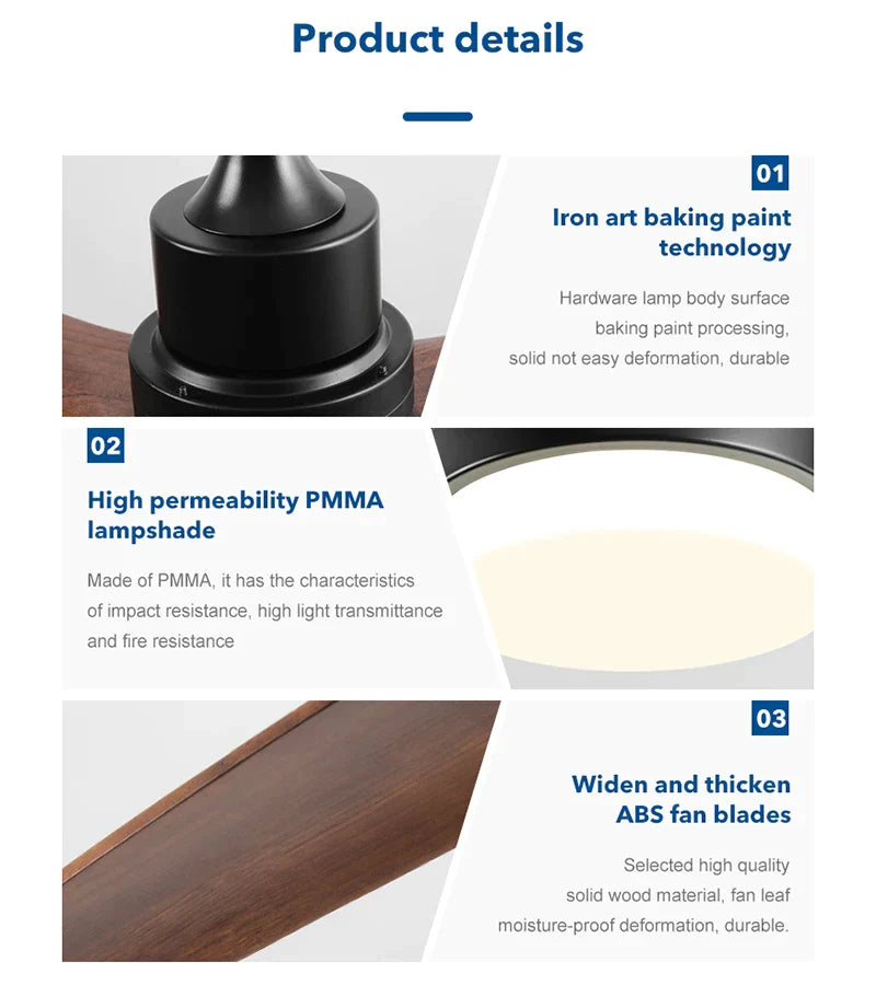 مع ضمان لمدة عامين، يمكنك الوثوق بجودة ومتانة هذه المروحة. إضاءة LED قابلة للتعتيم، مما يتيح لك خلق جو مثالي لأي مناسبة. المروحة حاصلة على شهادات FCC وCE وCCC، مما يضمن سلامتها وأدائها.
