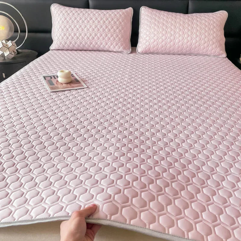 طقم سجادات سرير وأغطية وسائد DecorBites™ المحشوة باللاتكس بسمك 4 مم - سجادات نوم حريرية مُبردة