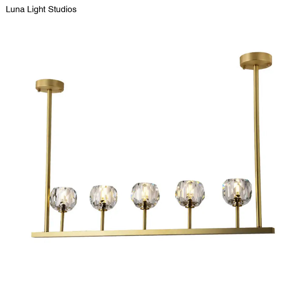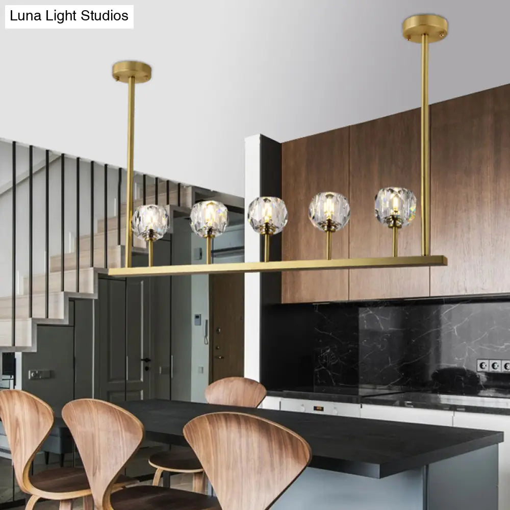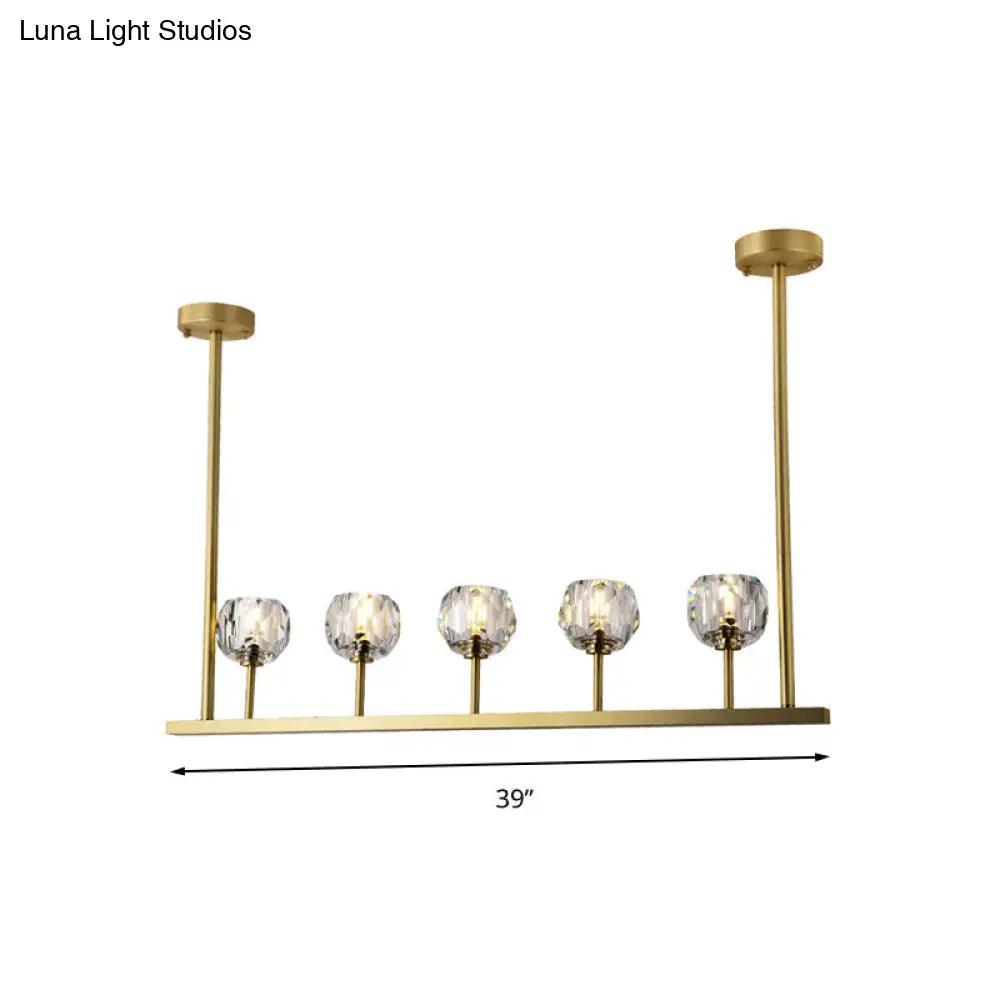 مصباح معلق على شكل كرة بلورية خطية من ديكوربايتس™ بخمسة رؤوس باللون الذهبي - تركيبات سقف أنيقة لغرفة الطعام