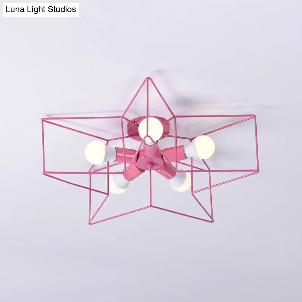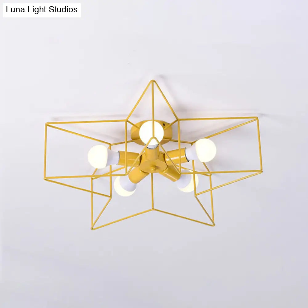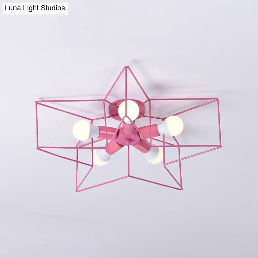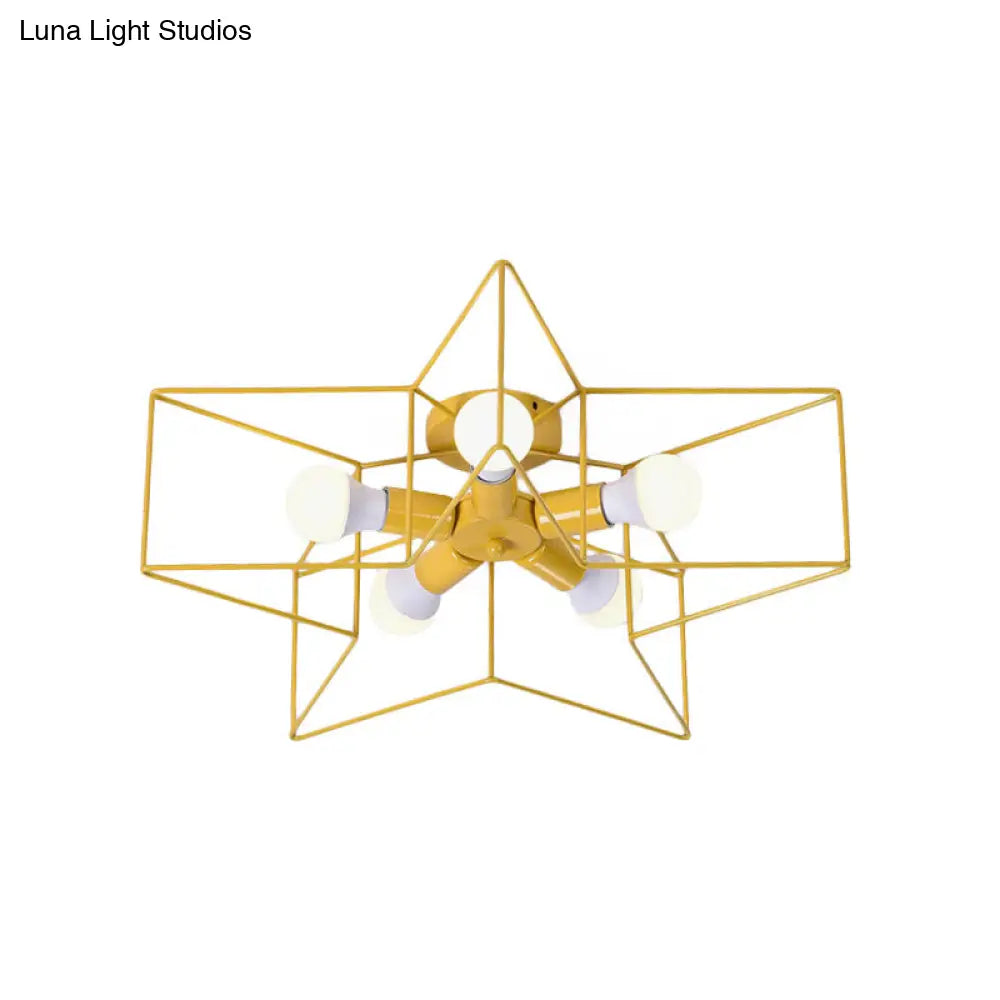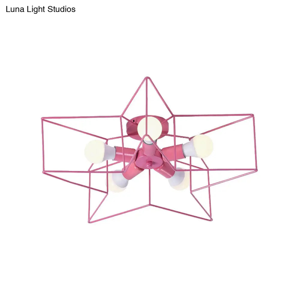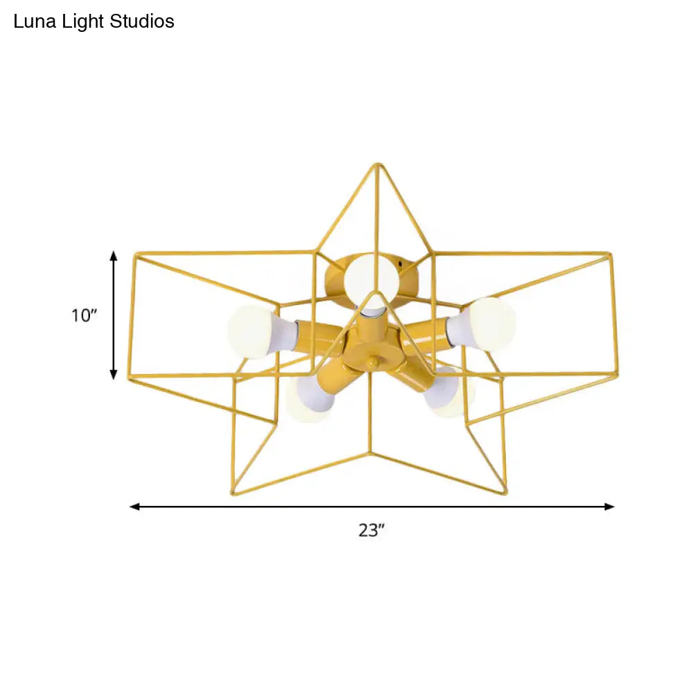 مصباح سقف صناعي DecorBites™ بخمسة مصابيح لغرفة نوم الأطفال بتصميم قفص النجوم