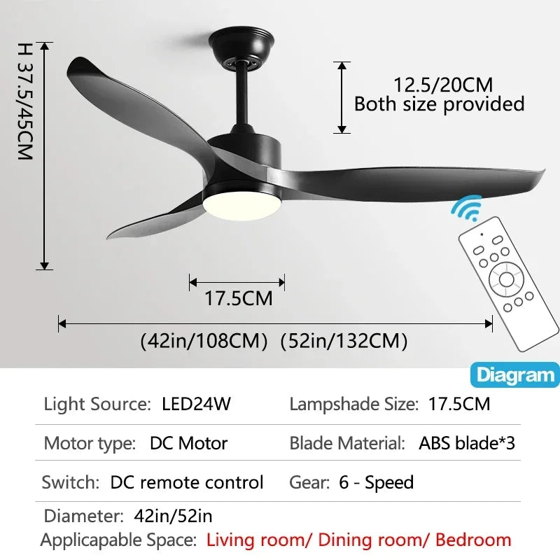 نقدم لكم مروحة السقف السوداء مقاس 52 بوصة مع جهاز تحكم عن بعد، المصممة لتناسب نمط الحياة العصري. تُعد هذه المروحة السقفية الرائعة مزيجًا مثاليًا بين الأناقة والوظيفة، مما يعزز أجواء غرفة المعيشة أو المطعم أو المنزل.