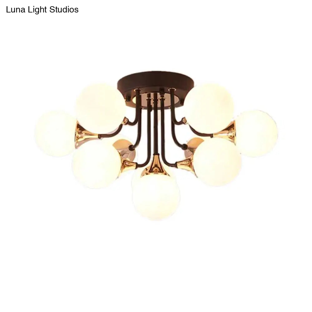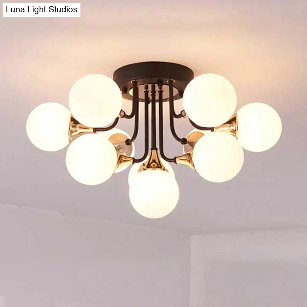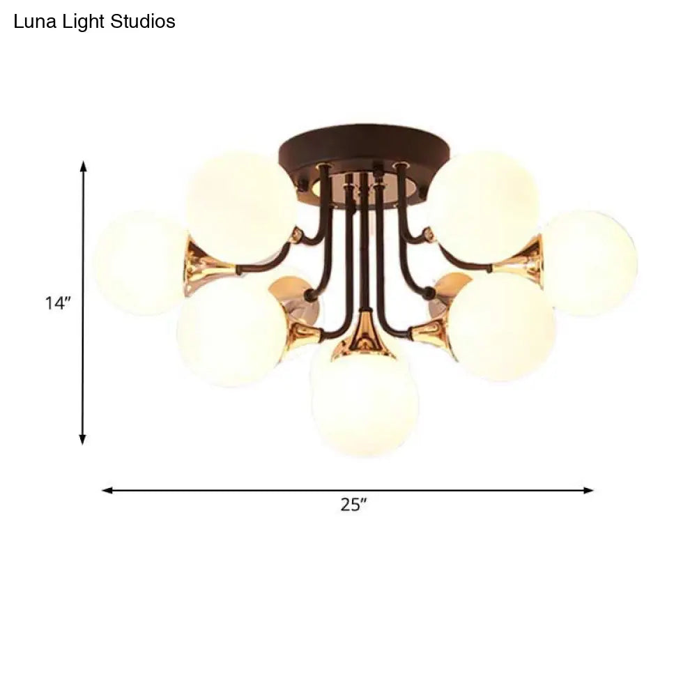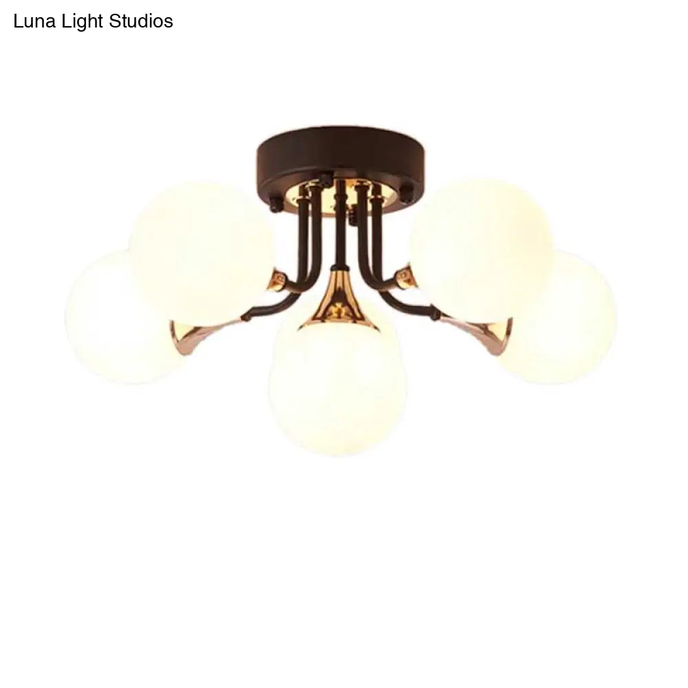 ثريا DecorBites™ 6/10/13 شبه مسطحة مع ظلال زجاجية بيضاء حليبية - ضوء كروي أسود مثبت في السقف
