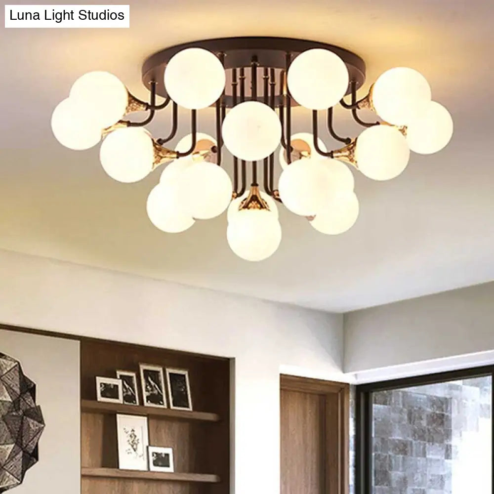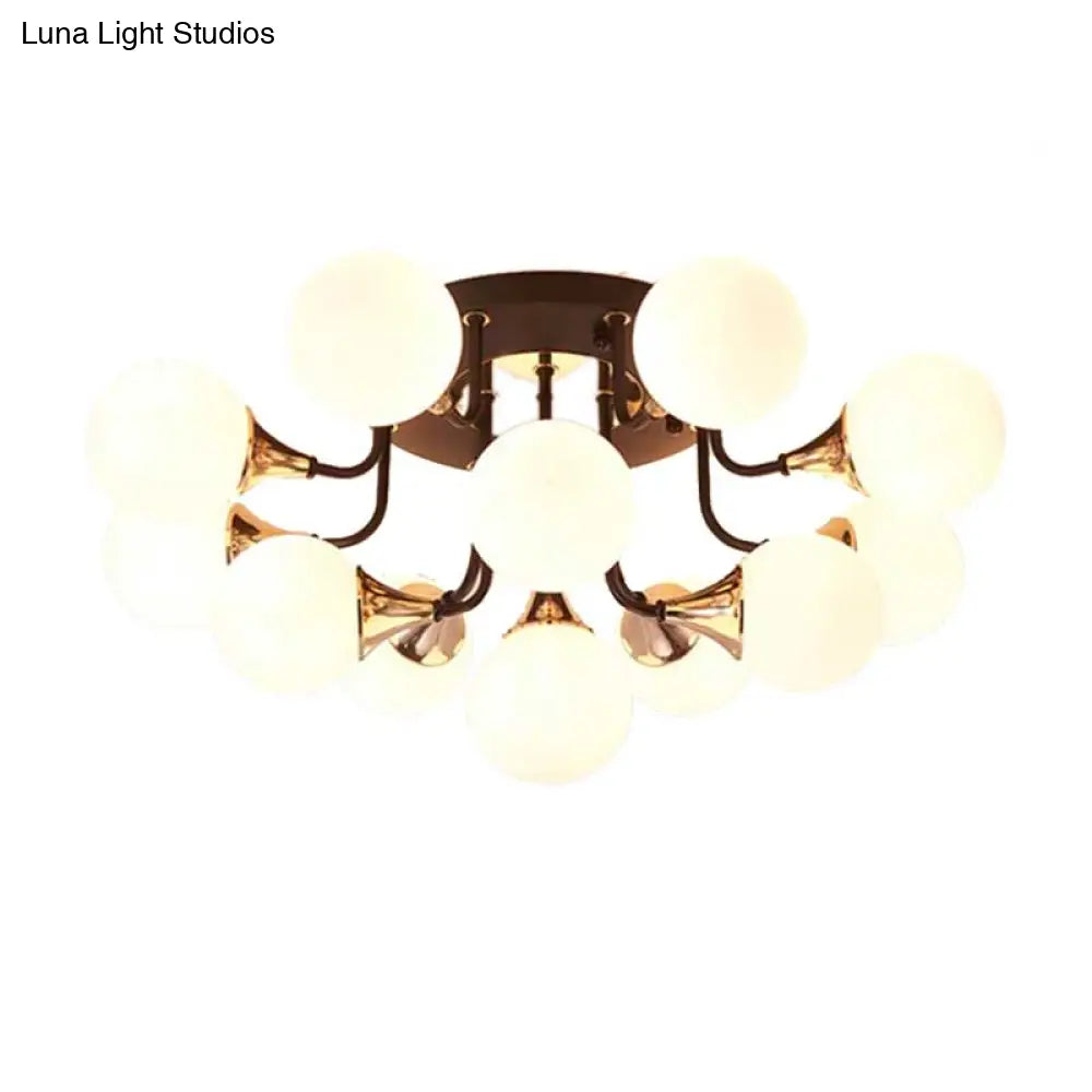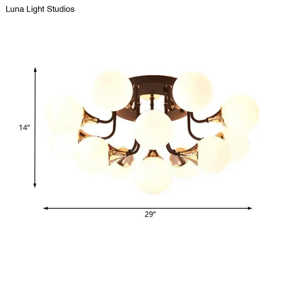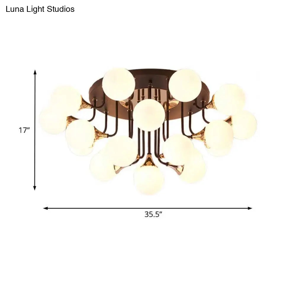ثريا DecorBites™ 6/10/13 شبه مسطحة مع ظلال زجاجية بيضاء حليبية - ضوء كروي أسود مثبت في السقف