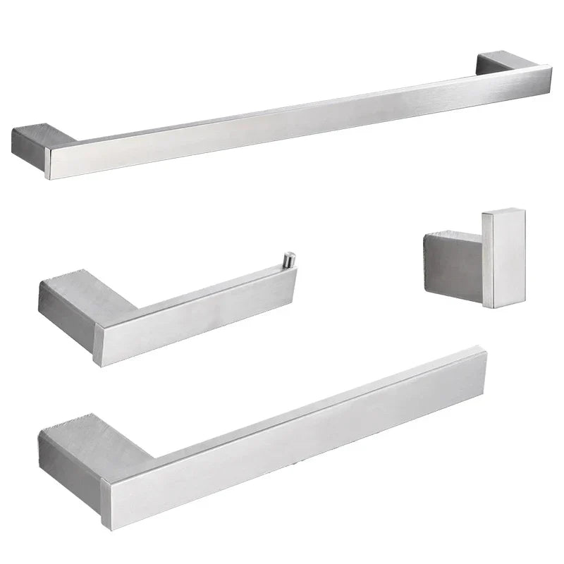جدّد حمامك بهذه المجموعة الرائعة التي تتضمن خطاف رداء، وحامل مناشف، وحامل رفوف، ورفًا. يضفي طلاء النيكل المصقول لمسة عصرية على مساحتك، ليمنحك مظهرًا أنيقًا وعصريًا.