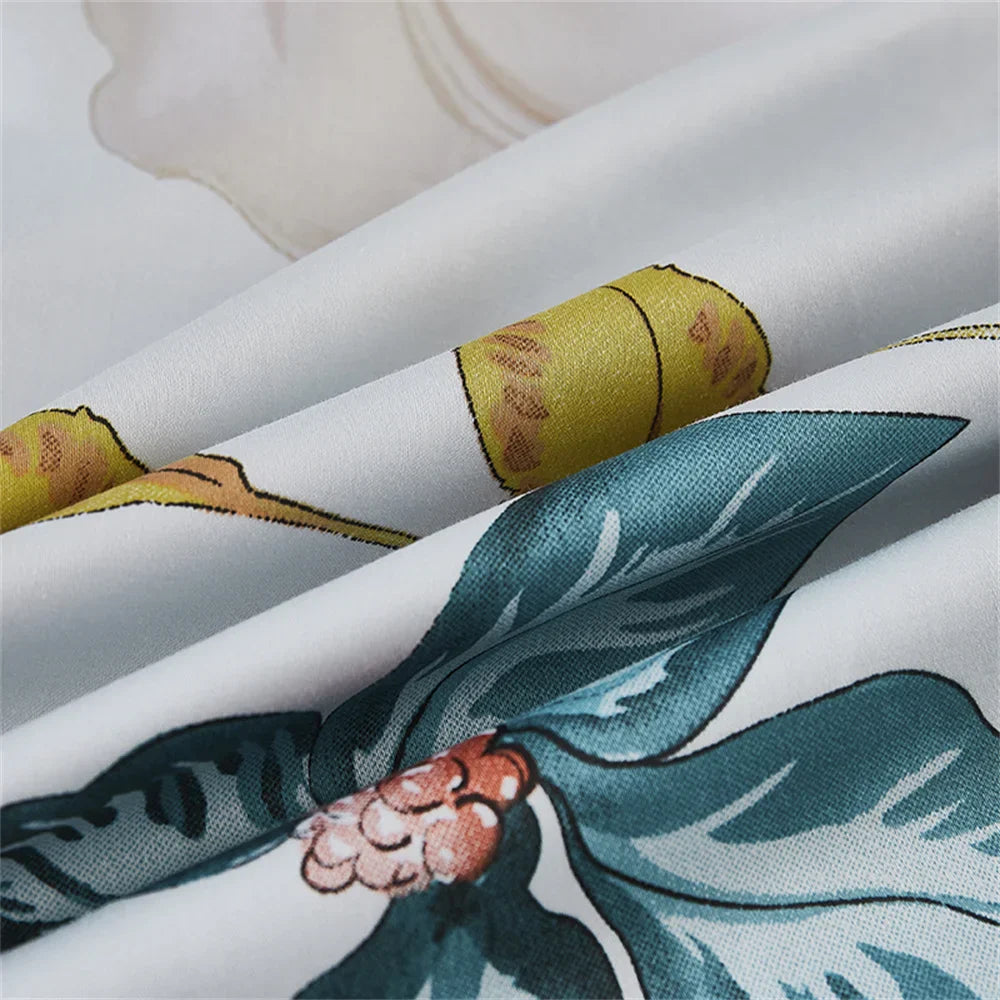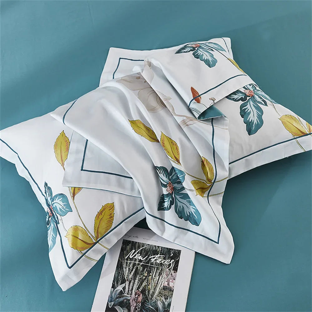 تتضمن المجموعة غطاء لحاف، وغطائي وسادة، وملاءة واحدة، جميعها مصممة خصيصًا لراحتك. يضفي التصميم الزهري لمسة من الأناقة والرقي على غرفة نومك، بينما يضمن ثبات اللون بدرجة 4 حيوية تدوم طويلًا.