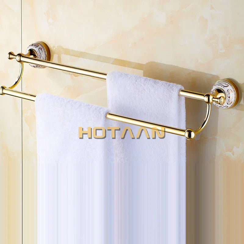 DecorBites™ قضيب منشفة مزدوج مقاس 60 سم مع لمسة نهائية من السيراميك الذهبي لإكسسوارات الحمام.