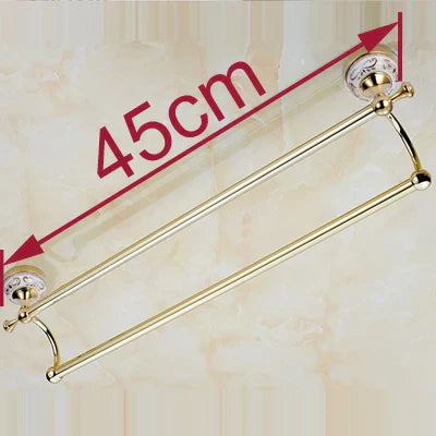 نقدم لك قضيب المناشف المزدوج مقاس 60 سم بلمسة نهائية ذهبية سيراميكية فاخرة، مثالي لإضافة لمسة من الأناقة إلى ديكور حمامك.