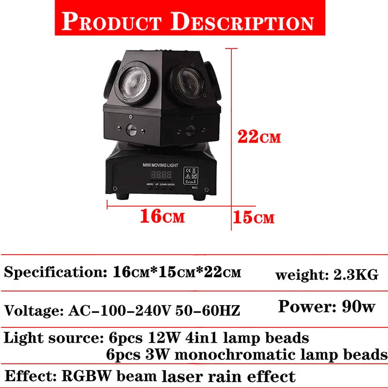 أضئ مسرحك وأبهر جمهورك بجهاز عرض ليزر ستروب بيم برأس متحرك بقوة 90 واط. أطلق العنان لإبداعك مع حل إضاءة قوي وجذاب. ارتقِ بفعالياتك إلى آفاق جديدة مع مزيج مثالي من العملية والأناقة.