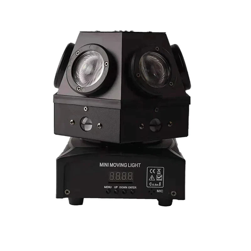 استمتع بقوة الألوان النابضة بالحياة مع درجات الأحمر والأخضر والأزرق التي تخلق جوًا غامرًا. تتيح لك خصائص التحكم الصوتي والحركة ذاتية الدفع وتأثيرات الستروب تخصيص عرضك الضوئي بسهولة.