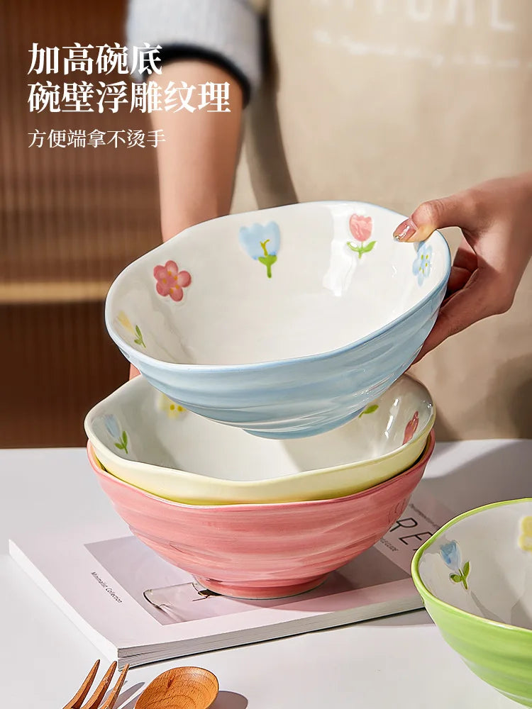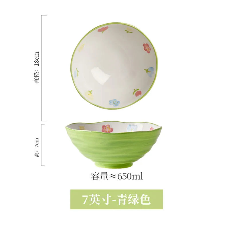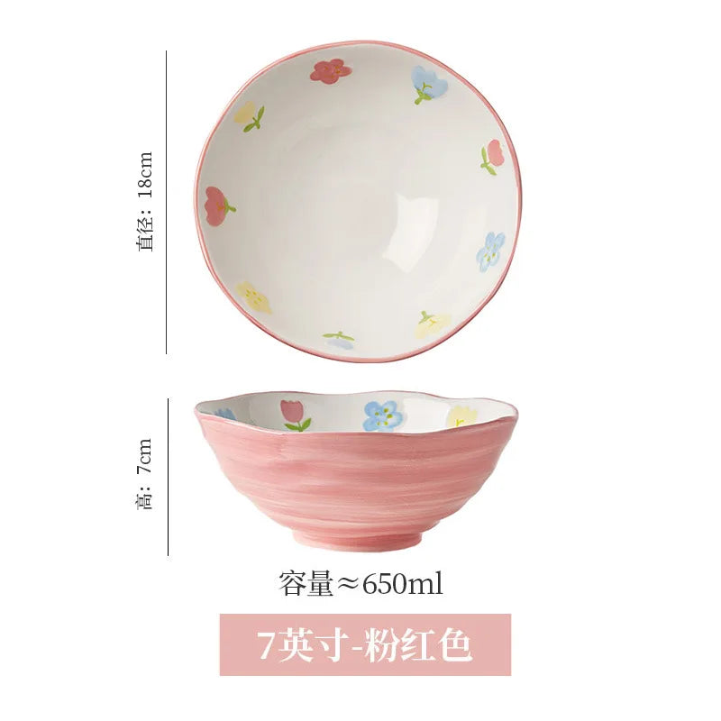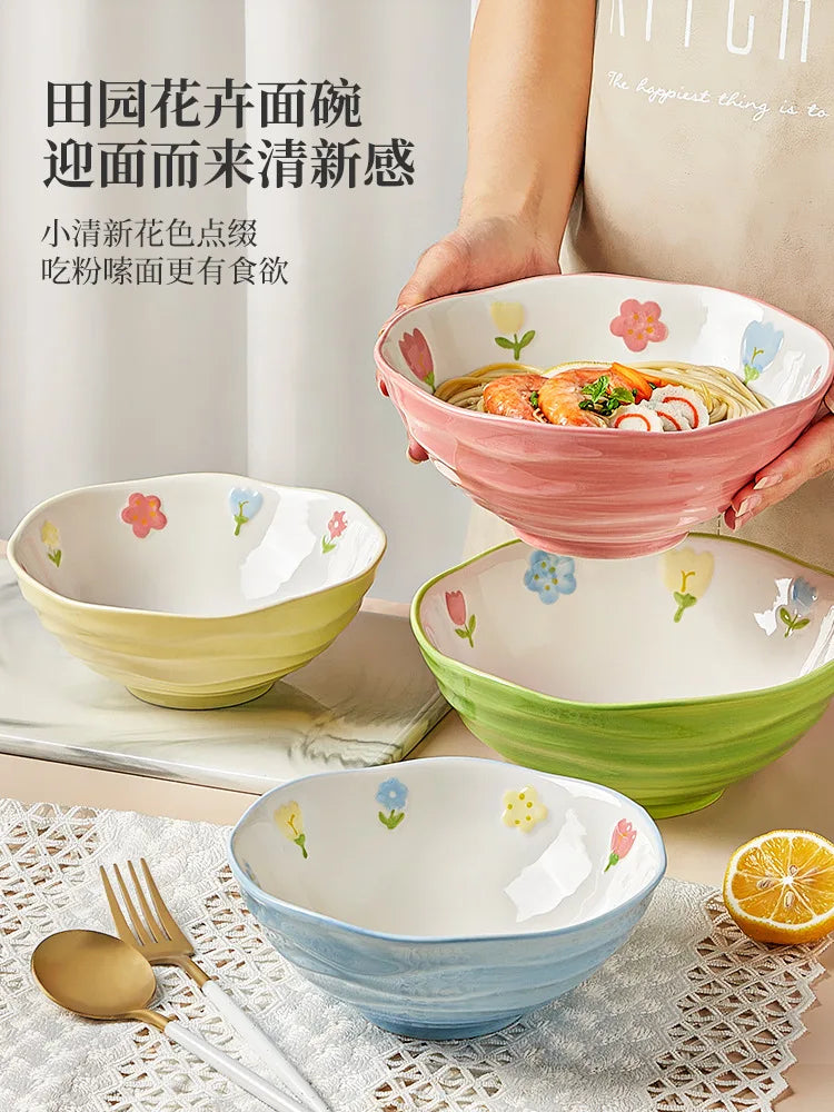 وعاء رامين خزفي مرسوم يدويًا من DecorBites™ مقاس 7 بوصات - وعاء نودلز كبير للمنزل والمطعم