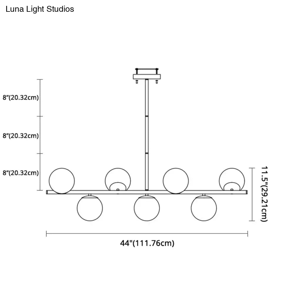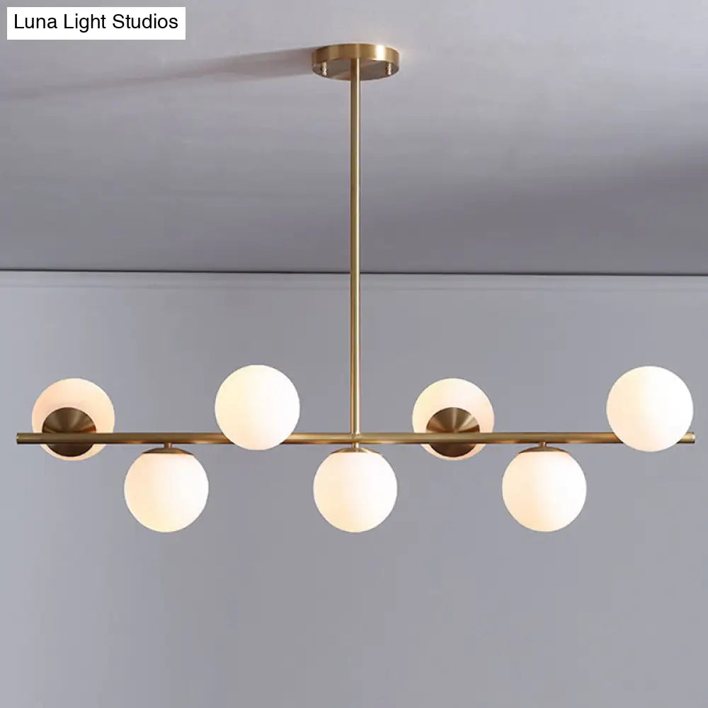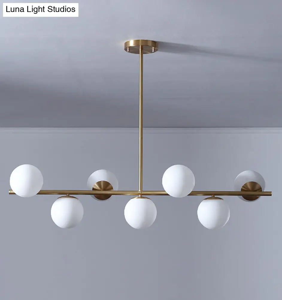 ديكوربايتس™ مصباح جزيرة معدني ذهبي حديث بسبعة مصابيح مع زجاج أبيض كروي - مثالي لطاولة الطعام