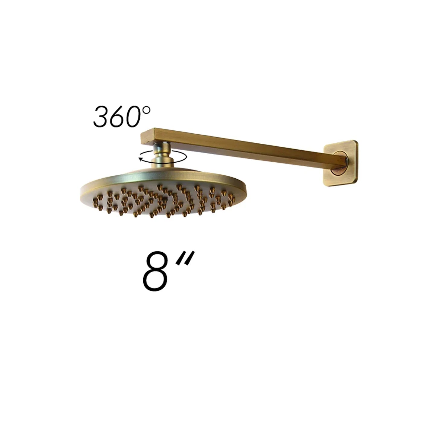 حسّن حمامك مع طقم حنفيات الدش الجدارية الدائرية من النحاس العتيق مقاس 8 بوصات، واستمتع بتجربة استحمام فاخرة كل يوم. عبّر عن فخامة وأناقة مع طقم الدش المتطور هذا الذي يجمع بين الأناقة والعملية والمتانة بسلاسة.