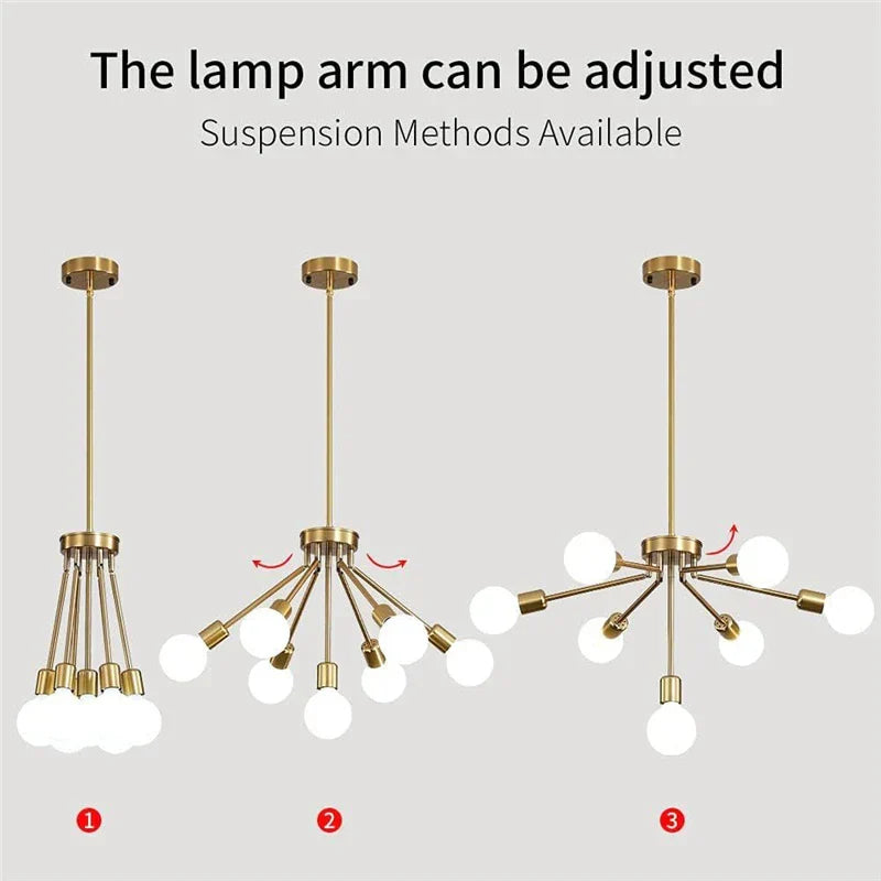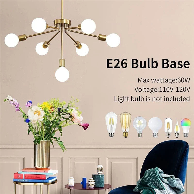 ثريا سقف نورديك DecorBites™ ذات 8 رؤوس باللون الأسود والأبيض والذهبي لديكور المنزل العصري