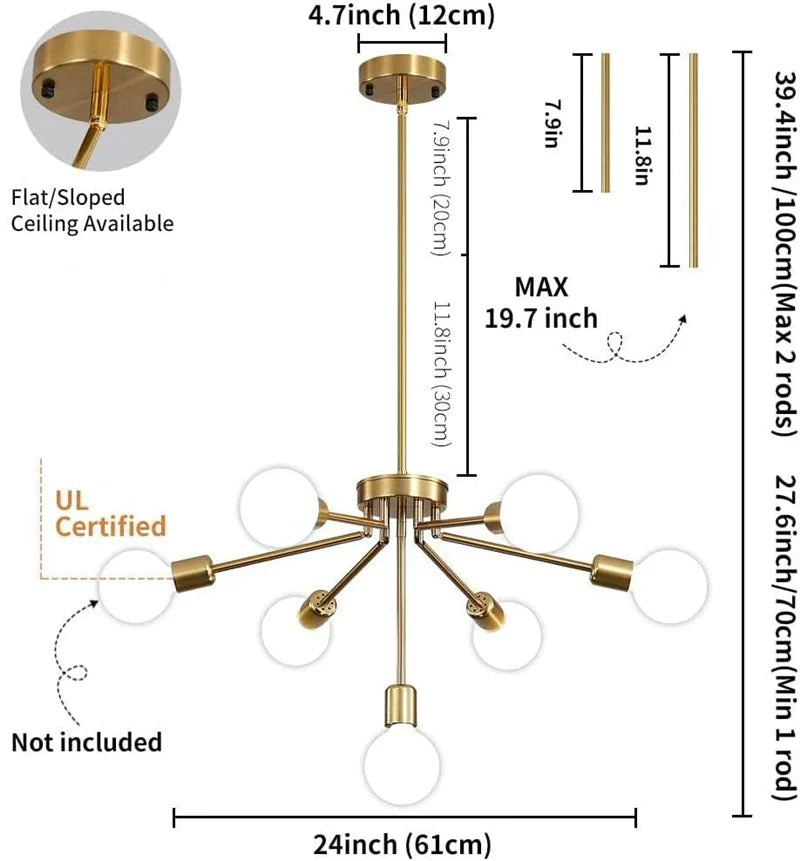 أضف لمسةً من الأناقة والسحر إلى مساحة معيشتك مع ثريا السقف النوردية ذات الثمانية رؤوس. ارتقِ بديكور منزلك مع هذه التركيبة الرائعة للإضاءة، التي تجمع بين الأناقة والعملية والحرفية العالية. أضف لمسةً من الرقي العصري إلى أي غرفة مع هذه الثريا ذات التصميم الجميل.
