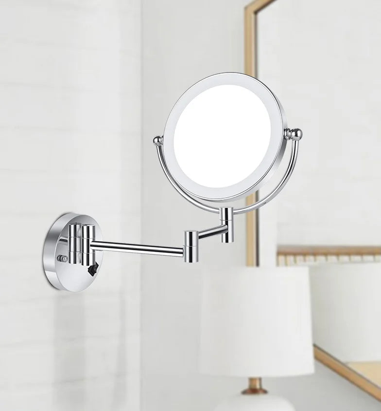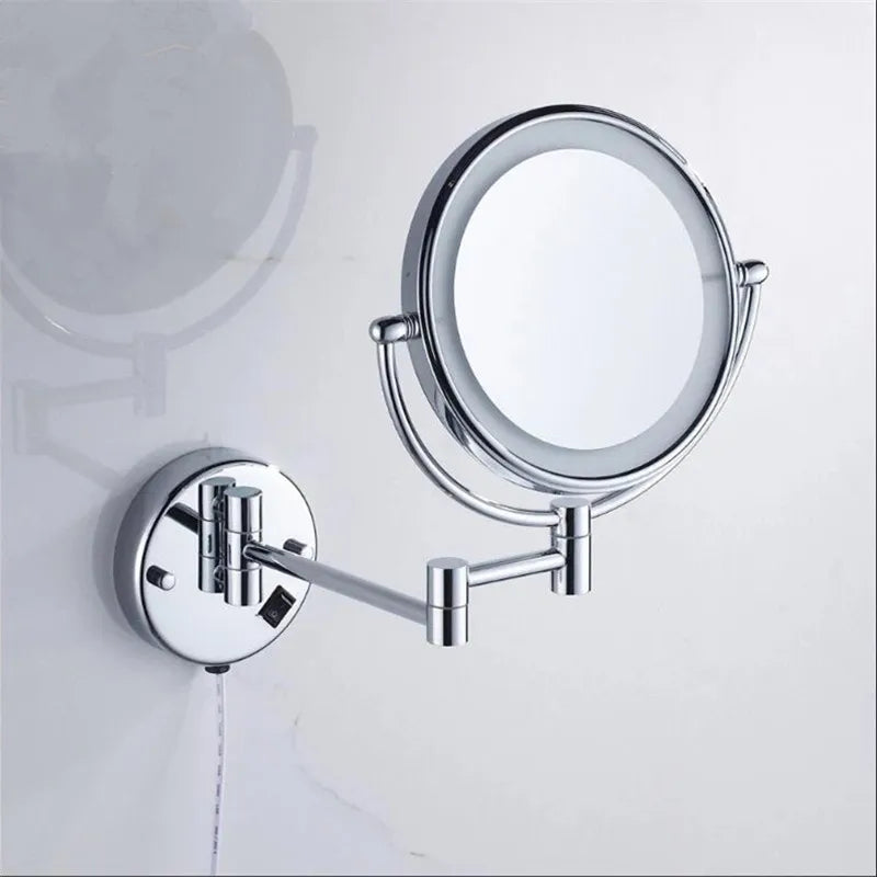 مصنوعة من النحاس المتين بلمسة نهائية أنيقة من الكروم، تتميز هذه المرآة العصرية بتصميم ذراعين قابلين للتمديد لمرونة فائقة. شكلها الدائري وحجمها البالغ 8 بوصات يجعلها الإضافة المثالية لأي حوض استحمام أو حمام.