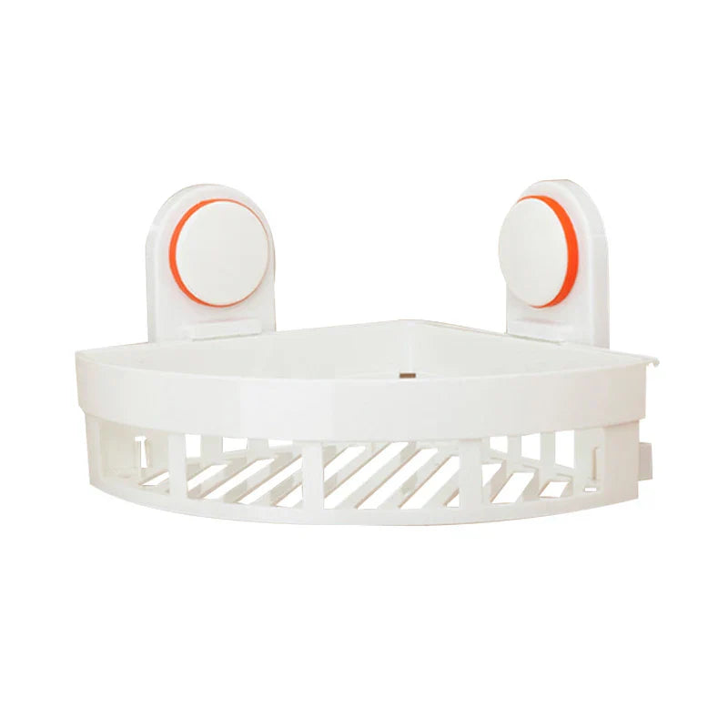 رف حمام DecorBites™ ABS: حامل سلة زاوية مثبت على الحائط ورف دش مزود بكأس شفط