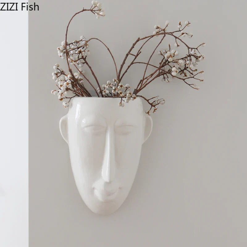 ديكور بايتس™ - مزهرية خزفية على شكل وجه إنسان تجريدي، وعاء نباتات، ديكور غرفة