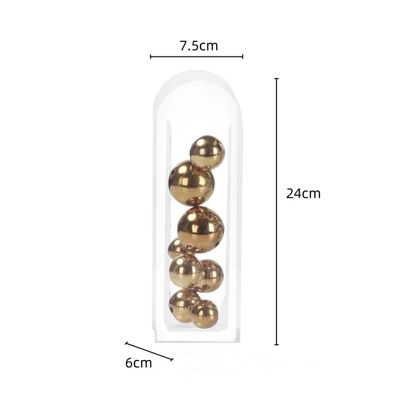 نقدم لكم مجموعة مزهريات الأكريليك الكروية، قطعة ديكور منزلية رائعة ستُضفي لمسةً من الأناقة على مساحة معيشتكم. مصنوعة من بلاستيك عالي الجودة، تتميز هذه المجموعة الفريدة من المزهريات بقوس ذهبي آسر يُضفي لمسةً من الرقي على أي غرفة.
