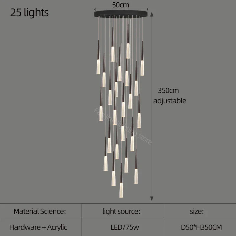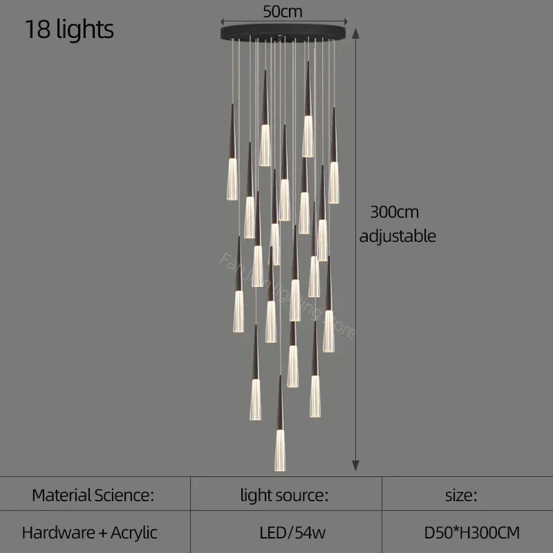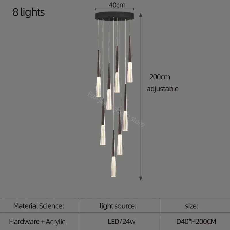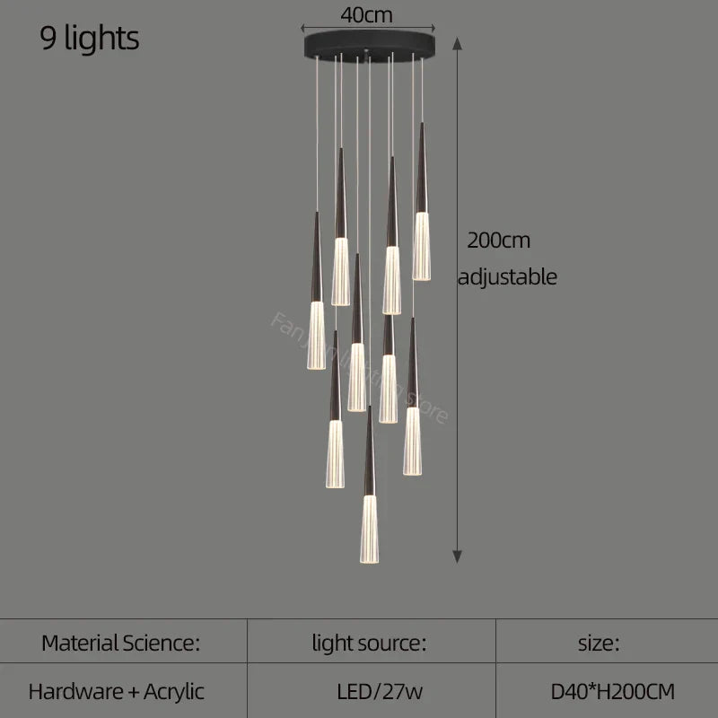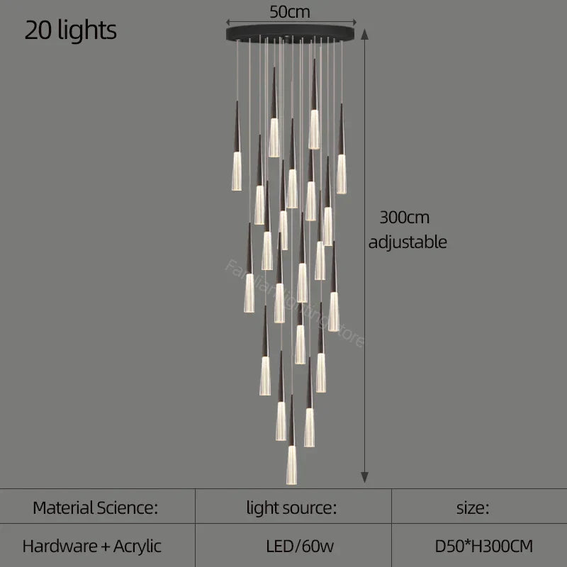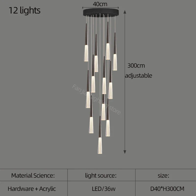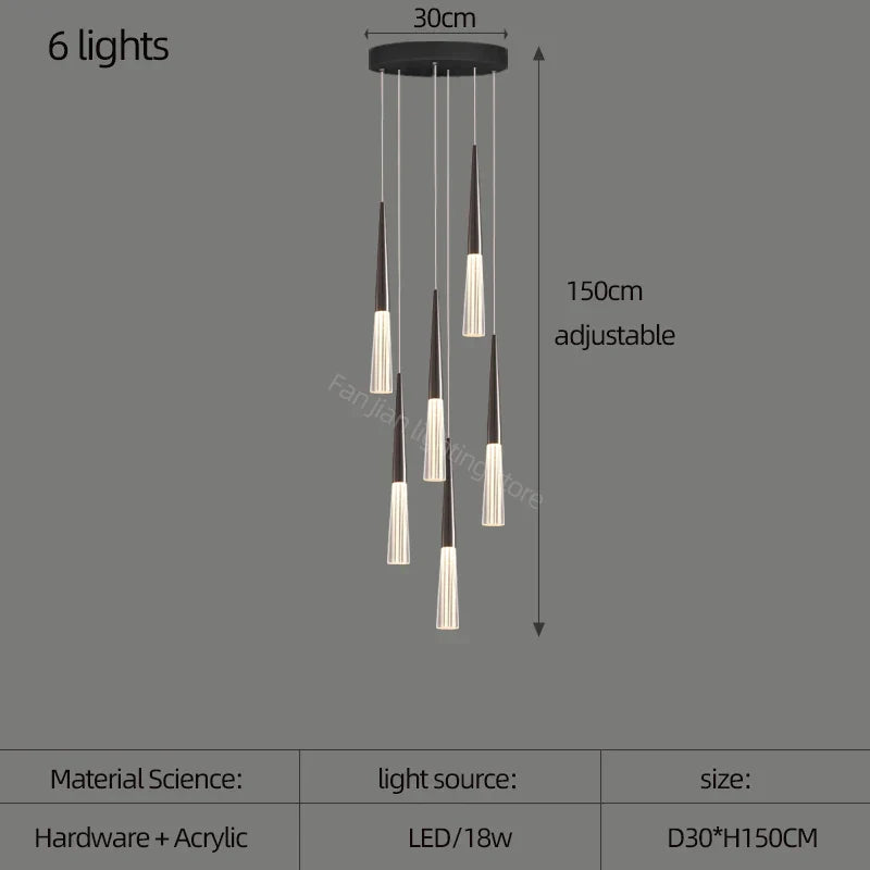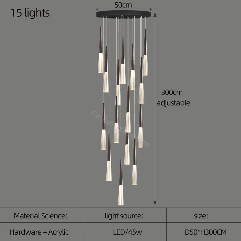 DecorBites™ مصباح مخروطي أكريليك معلق لسلالم الفيلا والمطبخ والمطعم.