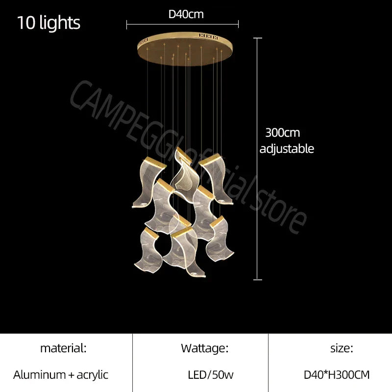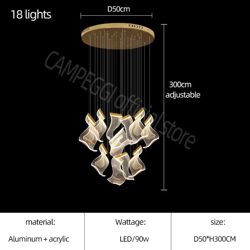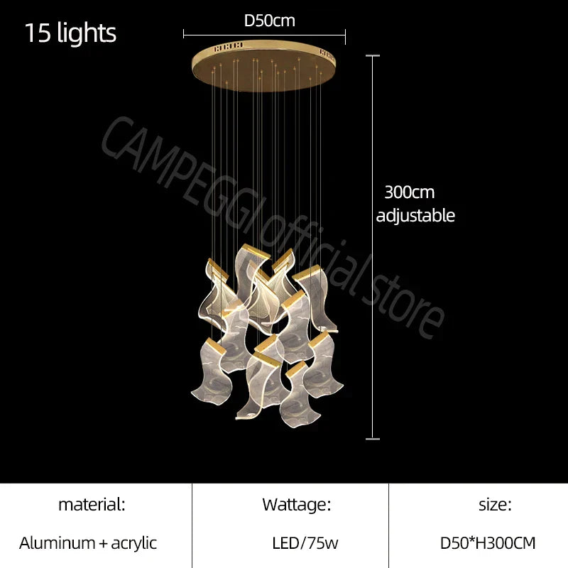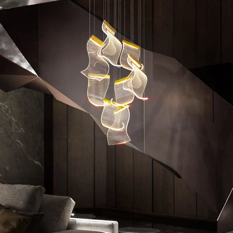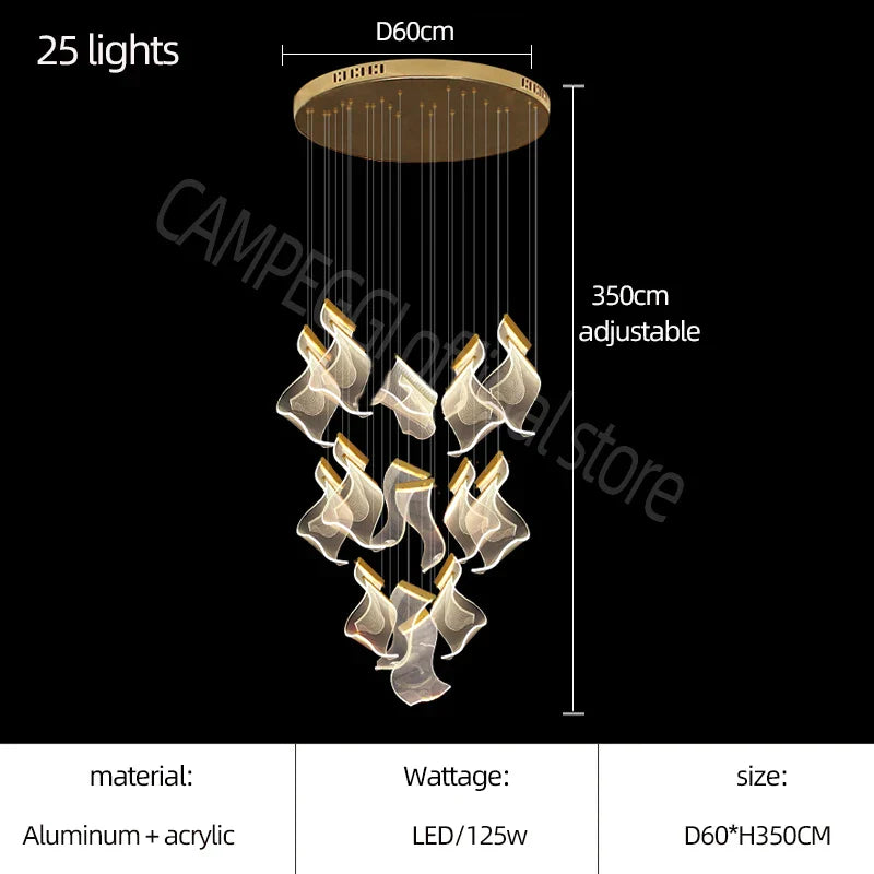 ثريا الدرج الفاخرة الأكريليكية من DecorBites™ - إضاءة ديكورية للفيلا، والردهة، وغرفة المعيشة
