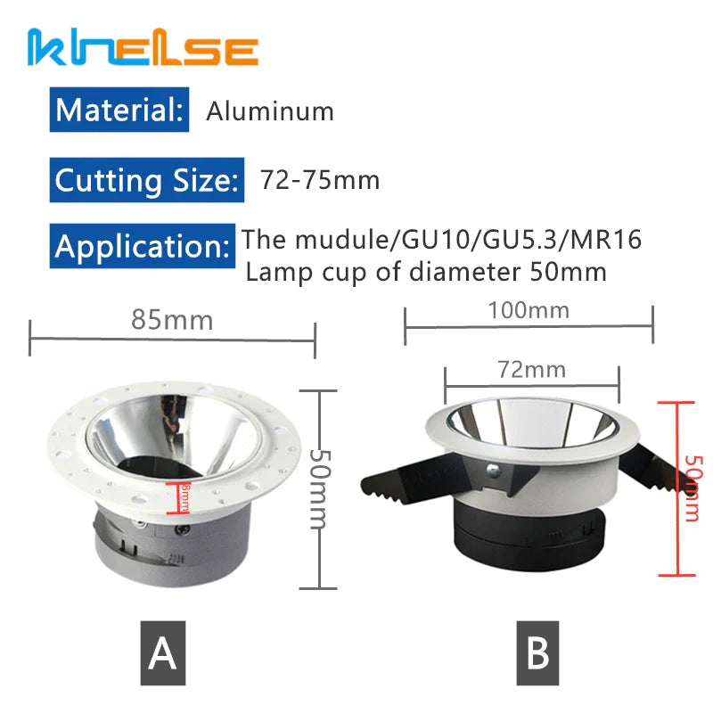 صُمم طراز GU10/MR16 من ملحقات التركيبات لسهولة التركيب، بحجم قطع يتراوح بين 72 و75 مم. متوفر باللون الأبيض، والأسود، والذهبي، والفضي، ما يتيح لك اختيار اللون المثالي الذي يُكمل ديكور منزلك.