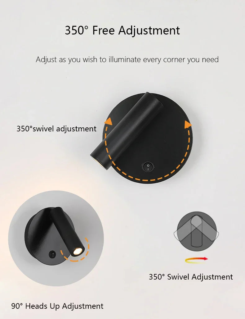 DecorBites™ مصباح قراءة حائطي LED قابل للتعديل بقوة 3 وات لغرفة النوم والفندق