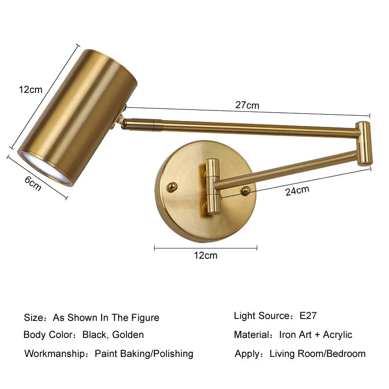 صُنع هذا المصباح الجداري من مواد عالية الجودة، ويتميز بلمسة نهائية أنيقة باللونين الأسود والذهبي، مما يضفي لمسة من الأناقة على مساحتك. يتيح لك ذراعه المتأرجح القابل للتعديل توجيه الضوء بدقة إلى المكان الذي تحتاجه، مما يجعله مثاليًا للقراءة في السرير أو لخلق أجواء مريحة في غرفتك.