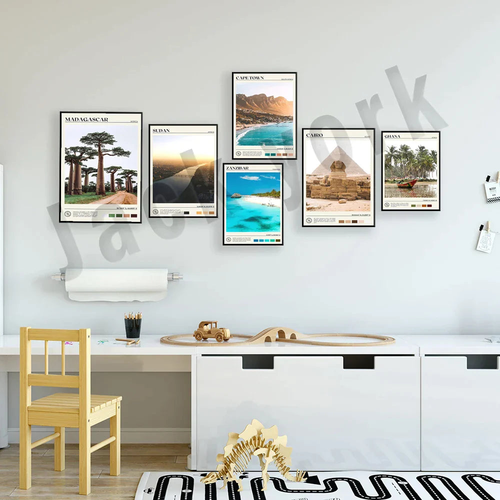 نقدم لكم مطبوعات ديكوربايتس القماشية من مجموعتنا لملصقات المناظر الطبيعية الأفريقية. صُممت هذه المطبوعات القماشية، المصنوعة من مواد عالية الجودة، لتُضفي جمال أفريقيا على منزلك.