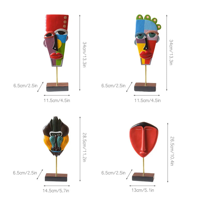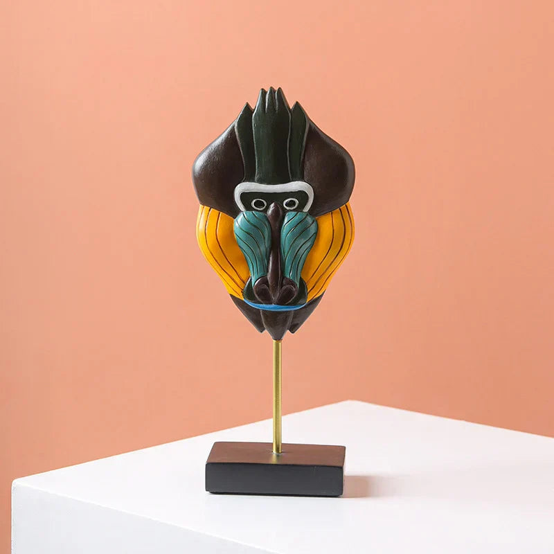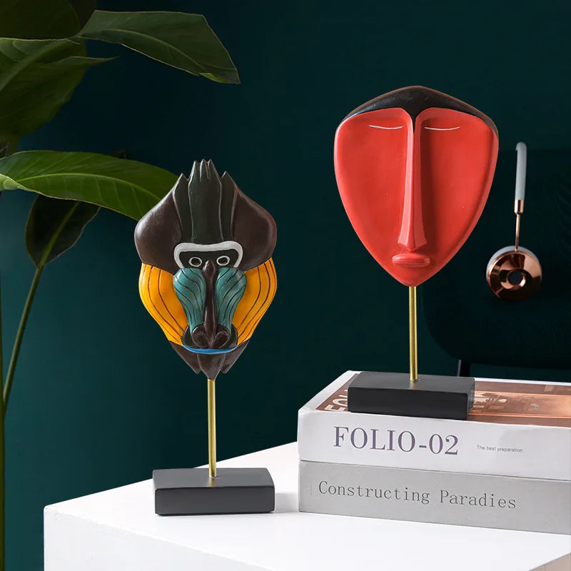 ديكوربايتس™ - منحوتة وجه قرد أفريقي تجريدية لديكور المنزل الحديث