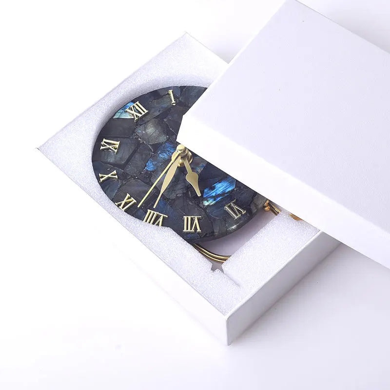 ساعة رقمية من حجر العقيق الذهبي من DecorBites™ لتزيين المنزل