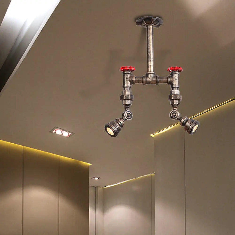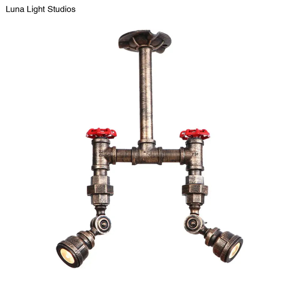 مصباح سقف DecorBites™ ذو الأنابيب البرونزية العتيقة شبه المسطح مع معدن على الطراز العتيق وصمام أحمر - مصباحان للممرات