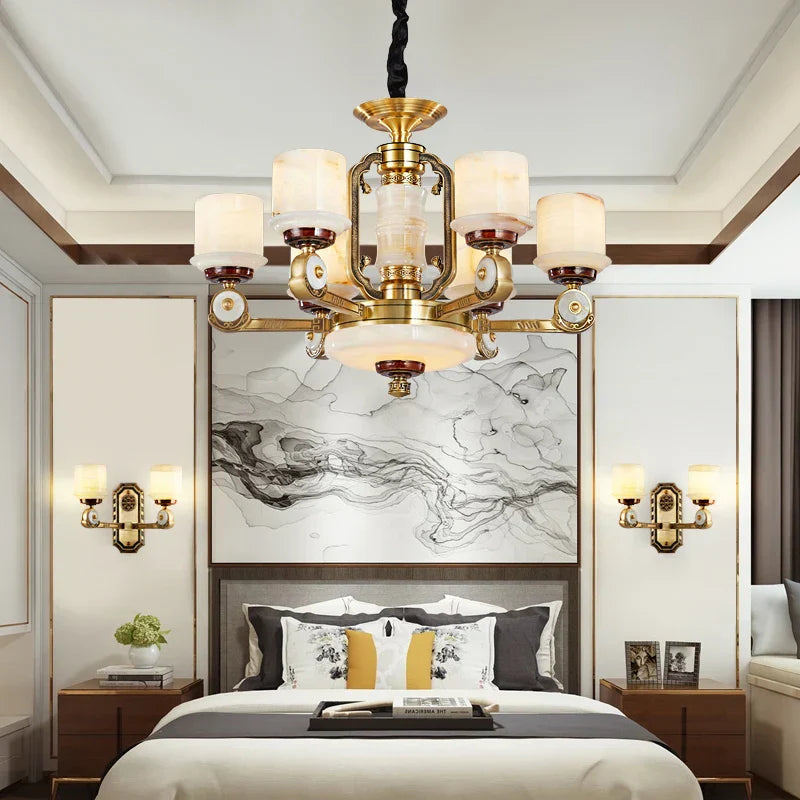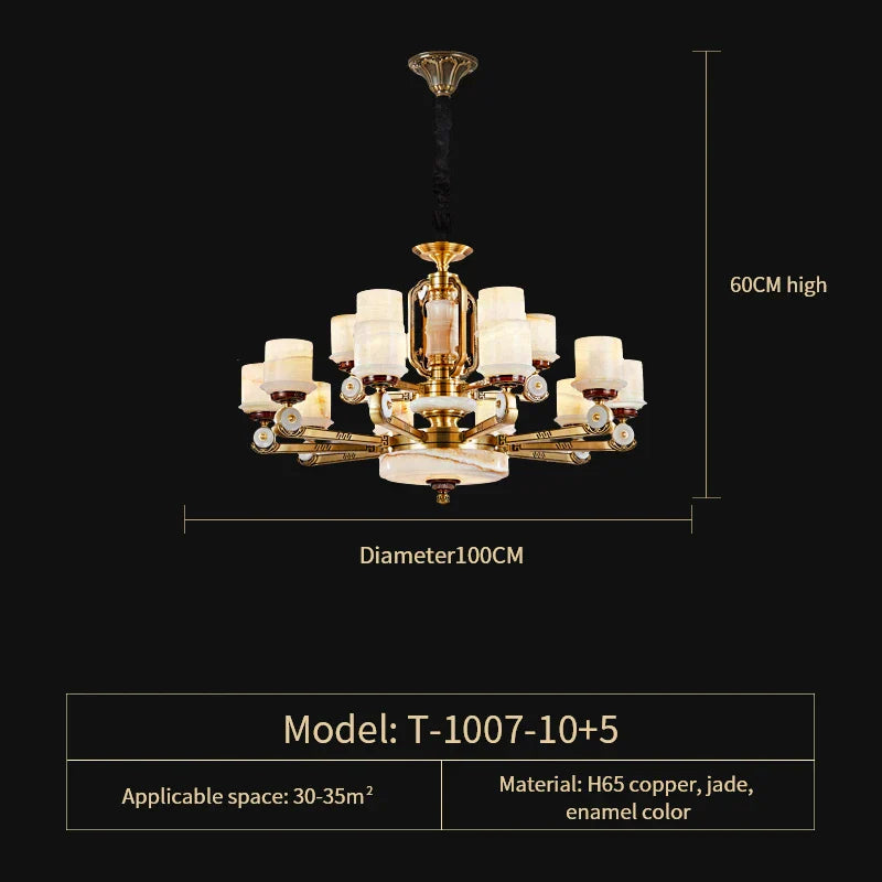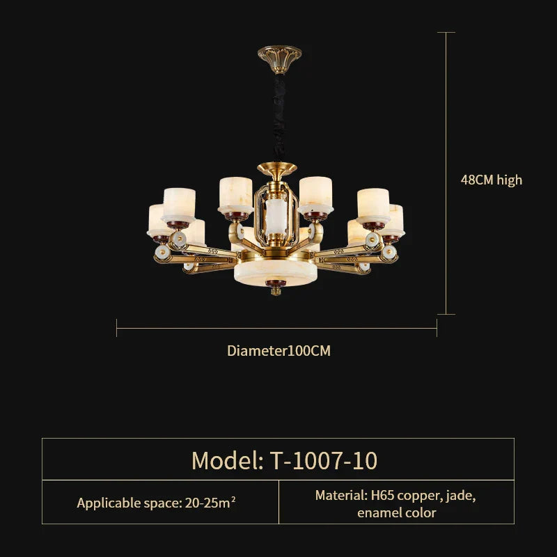 ثريا ديكوربايتس™ المصنوعة بالكامل من النحاس واليشم، على الطراز الصيني الحديث لغرفة المعيشة وغرفة النوم وغرفة الطعام.