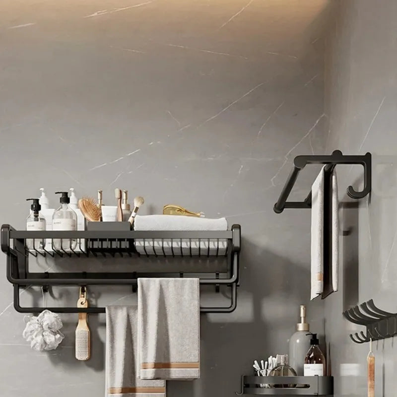 حسّن حمامك مع حامل مناشف الحمام المصنوع من الألومنيوم مع خطاف وسلة تخزين، المزيج المثالي بين الأناقة والعملية. استمتع بفخامة المواد عالية الجودة والتصميم المثالي، المصمم ليُحسّن روتينك اليومي.