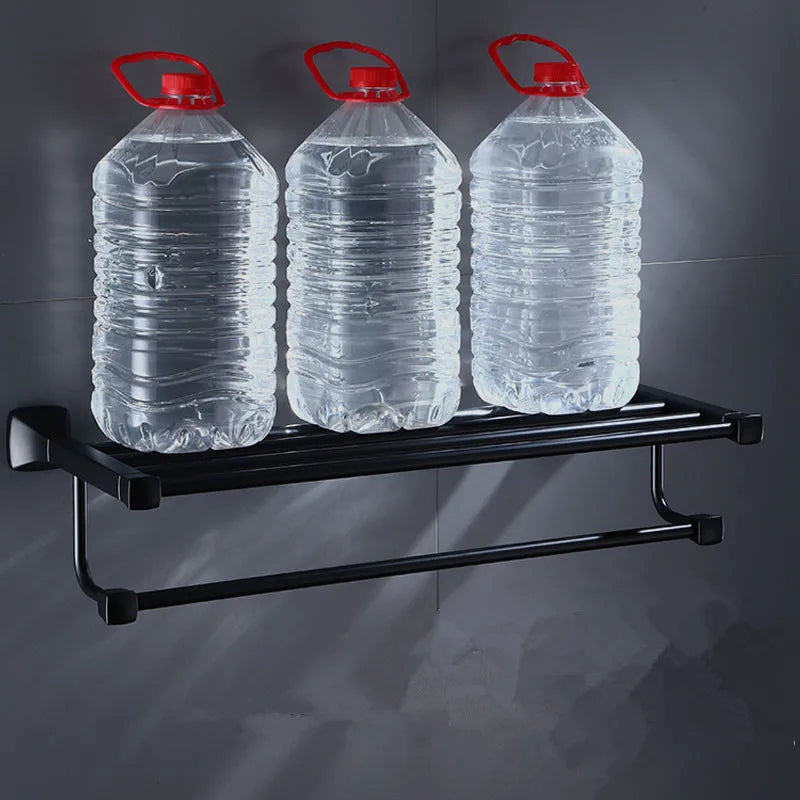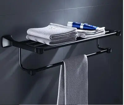 تتضمن المجموعة حامل مناشف، وحامل ورق، ورف زاوية، وحامل مناشف، وحامل فرشاة حمام، وغيرها الكثير، مما يوفر كل ما تحتاجه لتنظيم حمامك وتحسينه. كل قطعة مطلية بلون أسود فاخر، مما يضفي لمسة راقية على مساحتك.