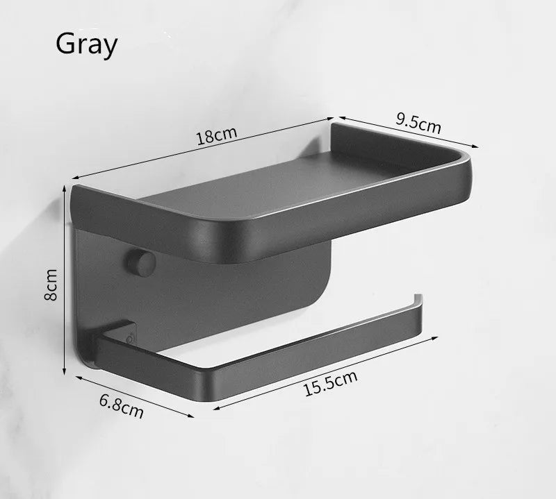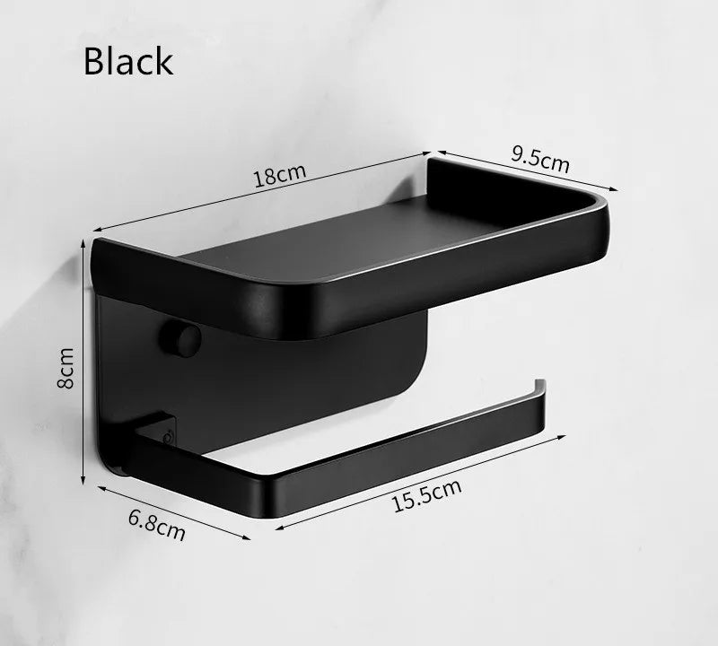 نقدم لكم حامل المناديل الأسود المصنوع من الألومنيوم مع رف للهاتف - رف ورق التواليت، إضافة أنيقة وعملية لديكور حمامكم. مصنوع من سبائك الألومنيوم عالية الجودة، يجمع هذا الحامل بين الأناقة والعملية بسلاسة.