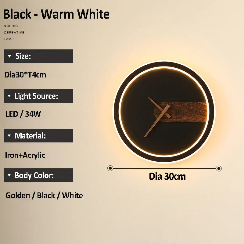 ديكوربايتس™ مصباح حائطي على شكل ساعة من الألومنيوم - مصباح جداري LED عصري للمنزل والفندق والممر