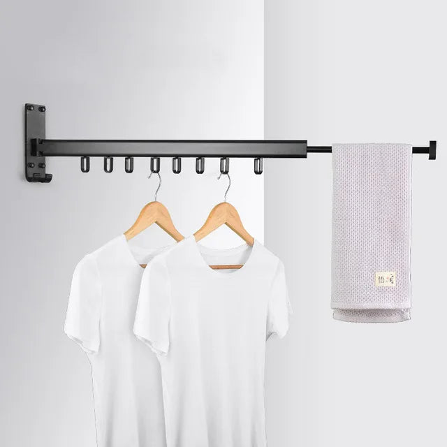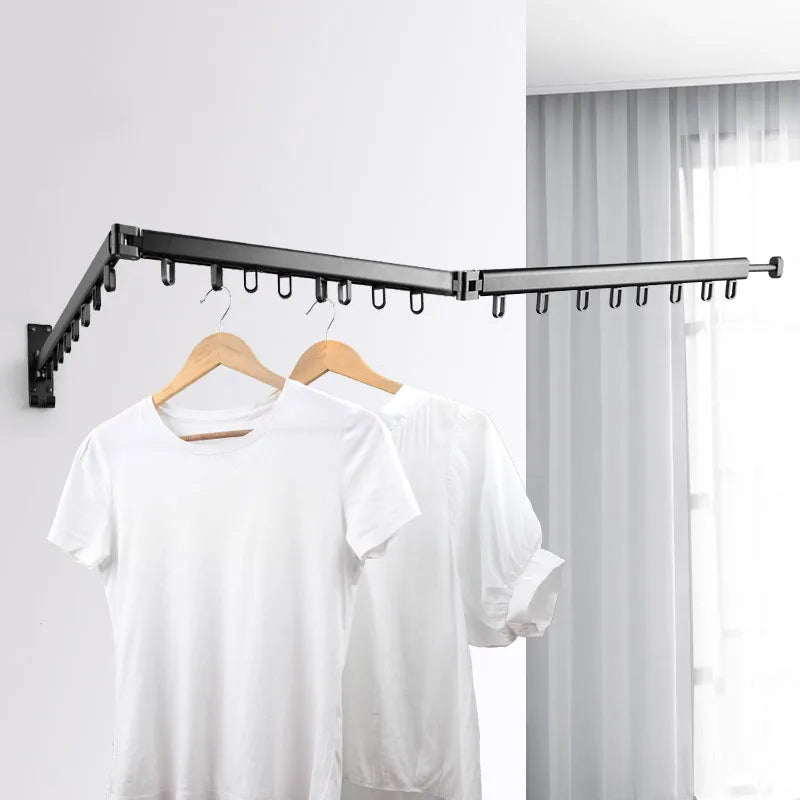 نقدم لكم رفّ تنظيم الملابس المصنوع من الألومنيوم، باللون الأسود الأنيق، المصمم لتنظيم مثالي وتوفير المساحة. حسّنوا روتين غسيلكم مع هذا الرفّ القابل للطيّ الذي يجمع بين الأناقة والعملية في آنٍ واحد.