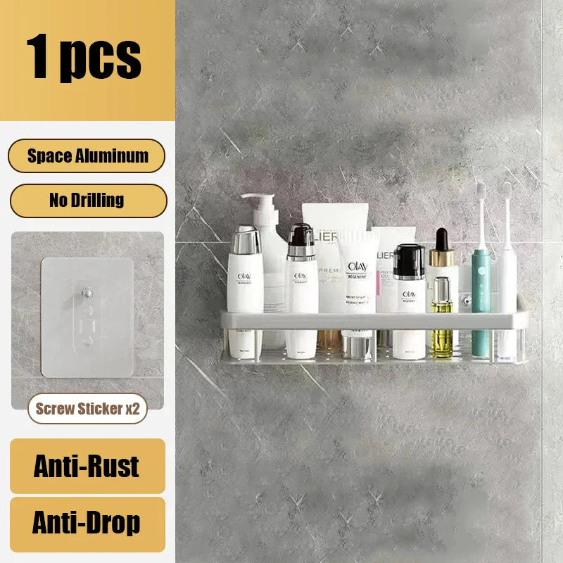 نقدم لكم منظم رفوف الزاوية المصنوع من الألومنيوم، الحل الأمثل للتخزين في حمامكم ومطبخكم. مصنوع من سبائك الألومنيوم عالية الجودة، يتميز هذا الرف ذو الطبقتين بتصميم أنيق وعصري يُكمل أي مساحة.