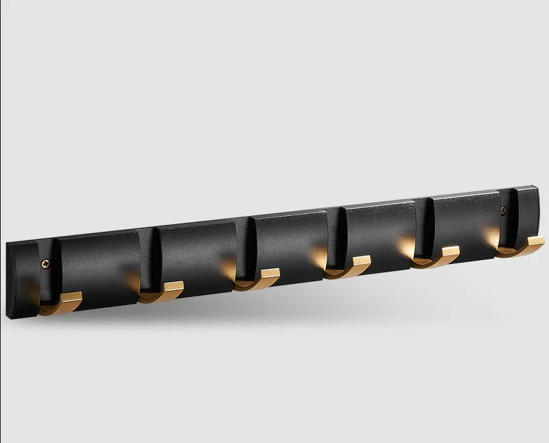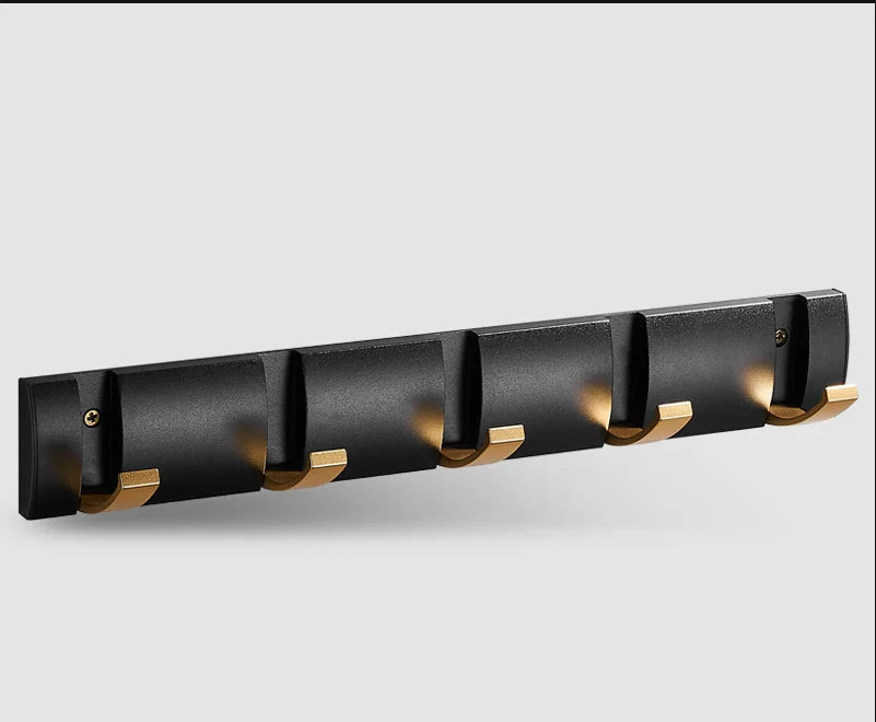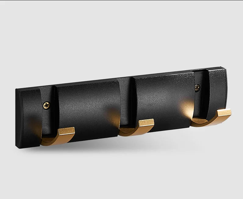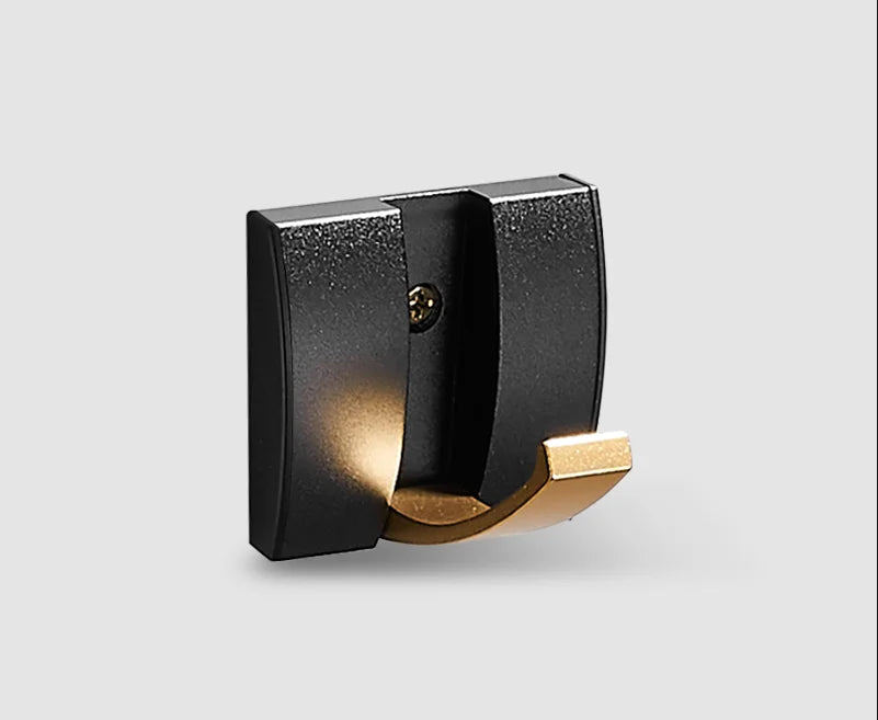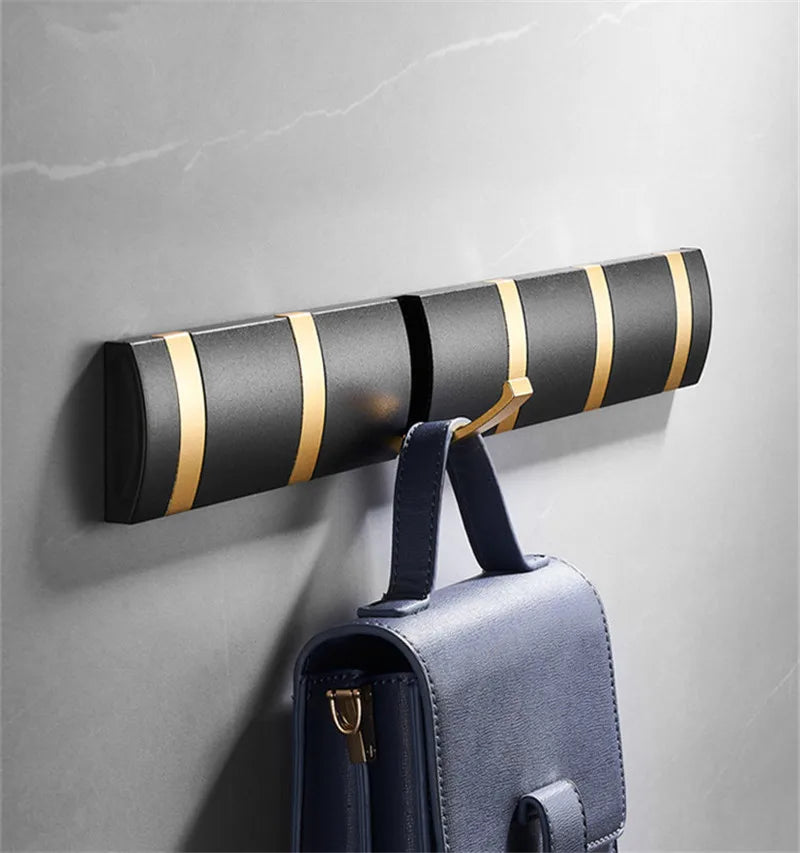 نقدم لكم خطاف رداء الحمام القابل للطي المصنوع من الألومنيوم باللون الأسود الذهبي، وهو إضافة أنيقة وعملية لأي مساحة. هذا الخطاف الحائطي مثالي لتنظيم مناشفك وأردية حمامك بشكل أنيق.