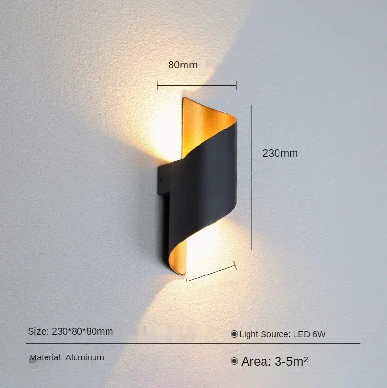 مصباح حائط خارجي من الألومنيوم من DecorBites™ مع إضاءة حلزونية لأعلى ولأسفل