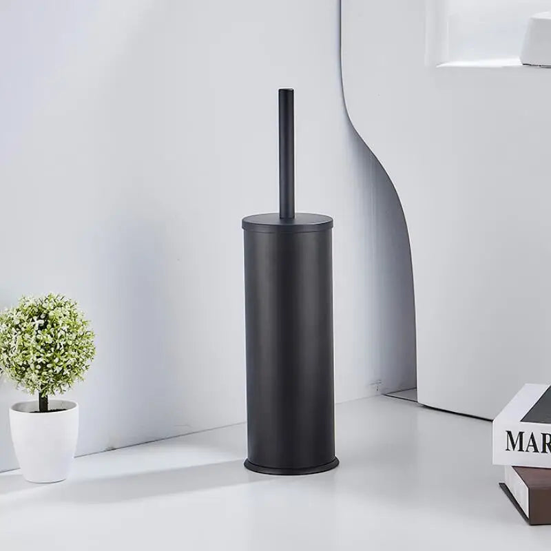حامل فرشاة المرحاض المتين مصنوع من سبائك الألومنيوم الفاخرة، مما يضمن أداءً يدوم طويلًا ولمسة نهائية أنيقة. سطح الحامل مطلي باللون الأسود الأنيق، مما يضفي لمسة من الرقي على ديكور حمامك. يضفي الكوب الخزفي لمسة راقية على المجموعة، حيث يجمع بين المتانة والفخامة.