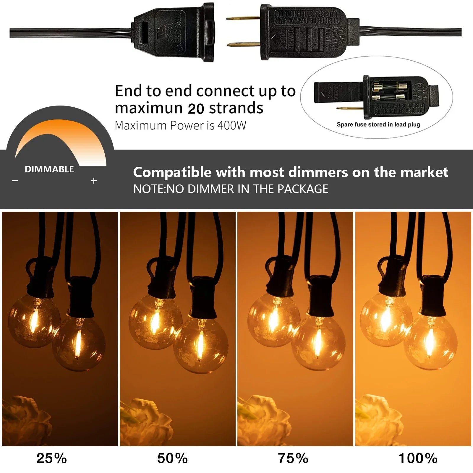 مع سلسلة أضواء بطول 25 قدمًا، أو 33 قدمًا، أو 50 قدمًا، يمكنك تخصيص العرض ليناسب مساحتك تمامًا. قاعدة لولبية E12 C7 تُسهّل التركيب، وتصميم مقاوم للماء يضمن المتانة للاستخدام الداخلي والخارجي.