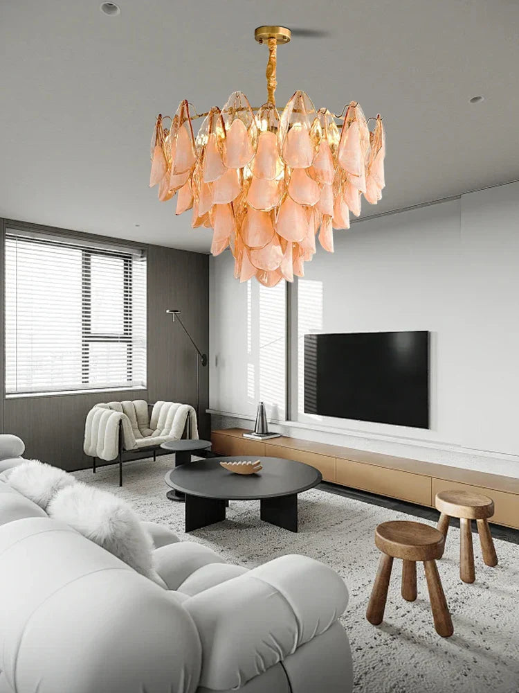 أضئ مساحتك بتوهج دافئ من مصابيح LED، المرفقة مع الثريا، والتي توفر نطاق تدفق ضوئي يتراوح بين ٢٠٠٠ و٨٢٠٠٠ لومن. تصميم الثريا على شكل بتلة يضفي عليها لمسة فنية فريدة، مما يجعلها قطعة فنية مميزة في أي غرفة. يتميز غطاء الثريا بزجاج ملون متحرك لأعلى ولأسفل، مما يخلق تلاعبًا ساحرًا بالضوء والظل.