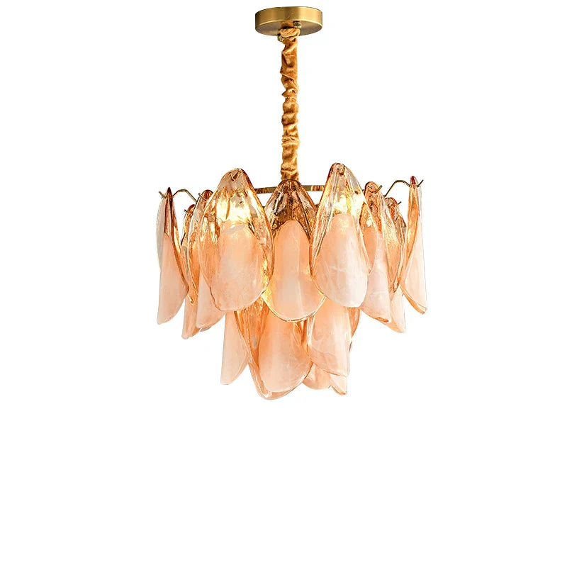 ثريا DecorBites™ الزجاجية الكهرمانية: وحدة إضاءة فاخرة قابلة للتعتيم لغرفة المعيشة والردهة