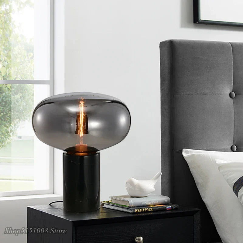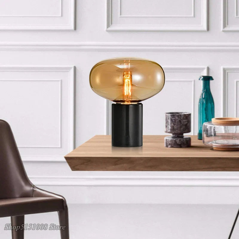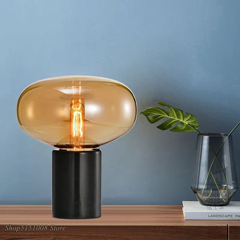 مصباح طاولة زجاجي كهرماني من DecorBites™ لمساحات المعيشة العصرية