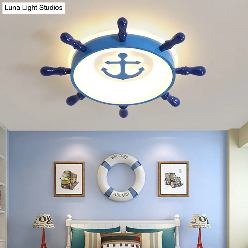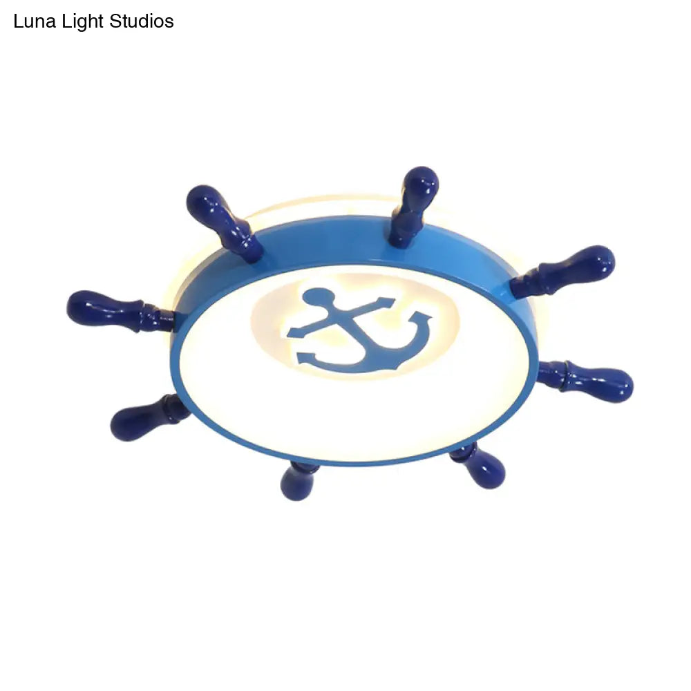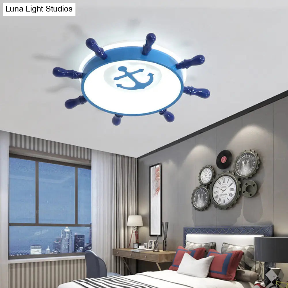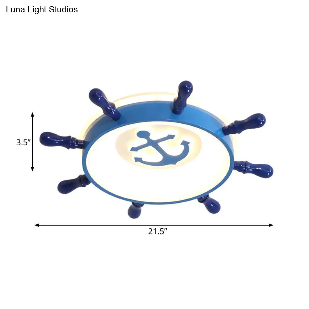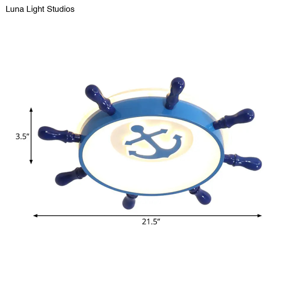 ديكوربايتس™ مصباح سقف LED بنمط مرساة مع تصميم دفة زرقاء للأطفال، إضاءة دافئة/بيضاء