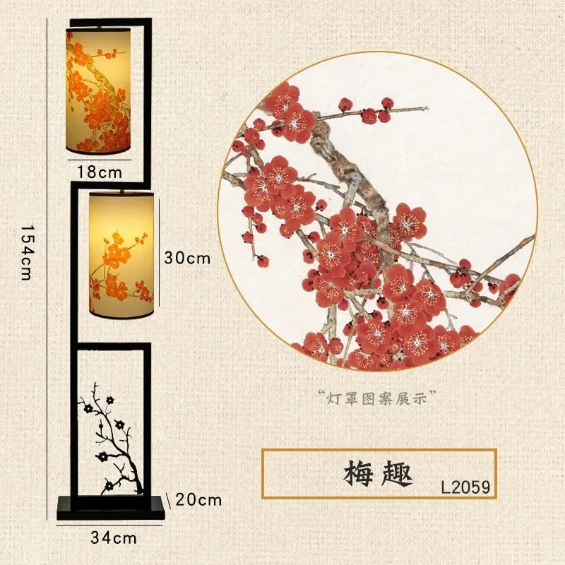 ديكوربايتس™ مصباح أرضي على الطراز الصيني بنقشة زهرة البرقوق القديمة - صورة مطبوعة إبداعية